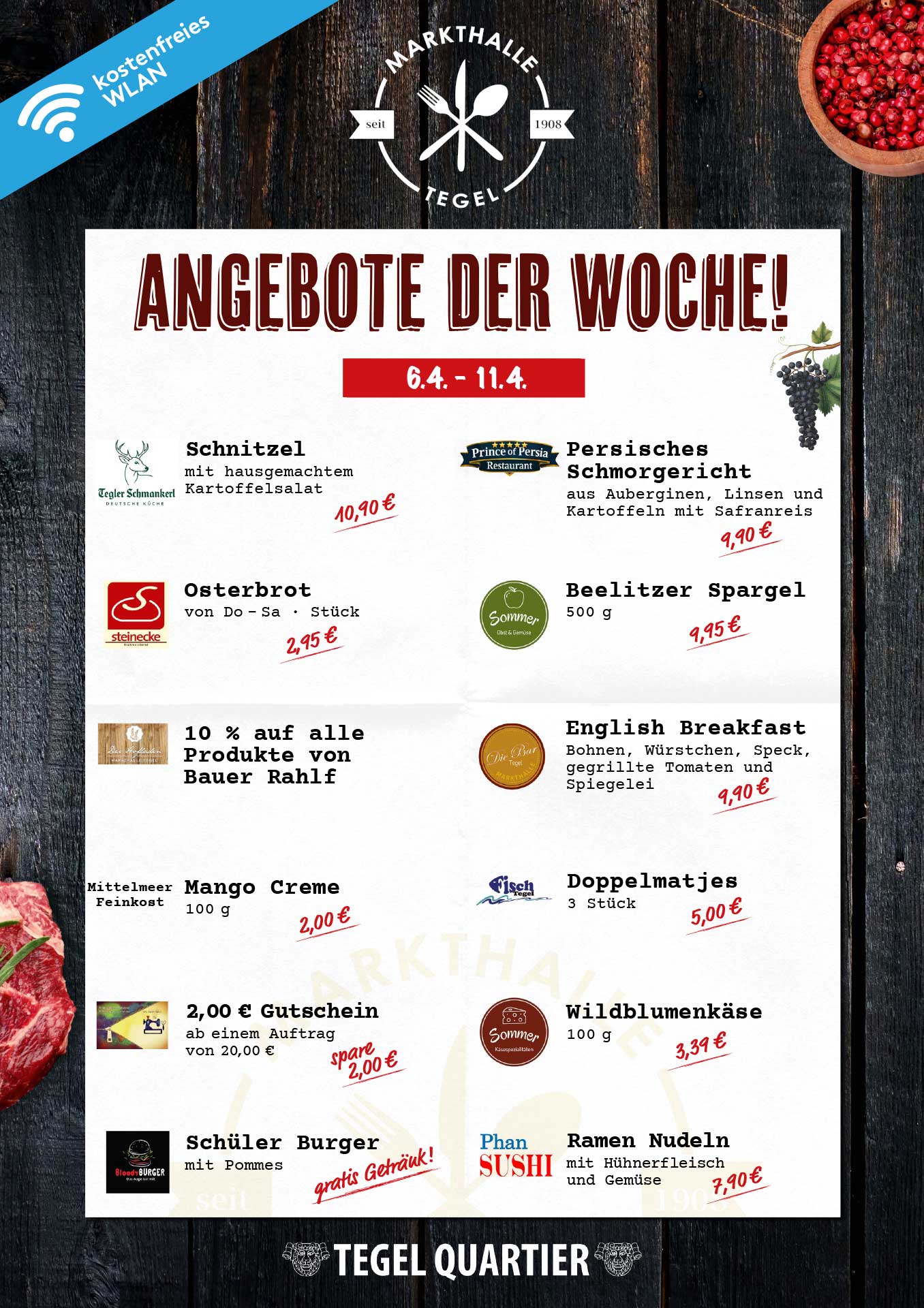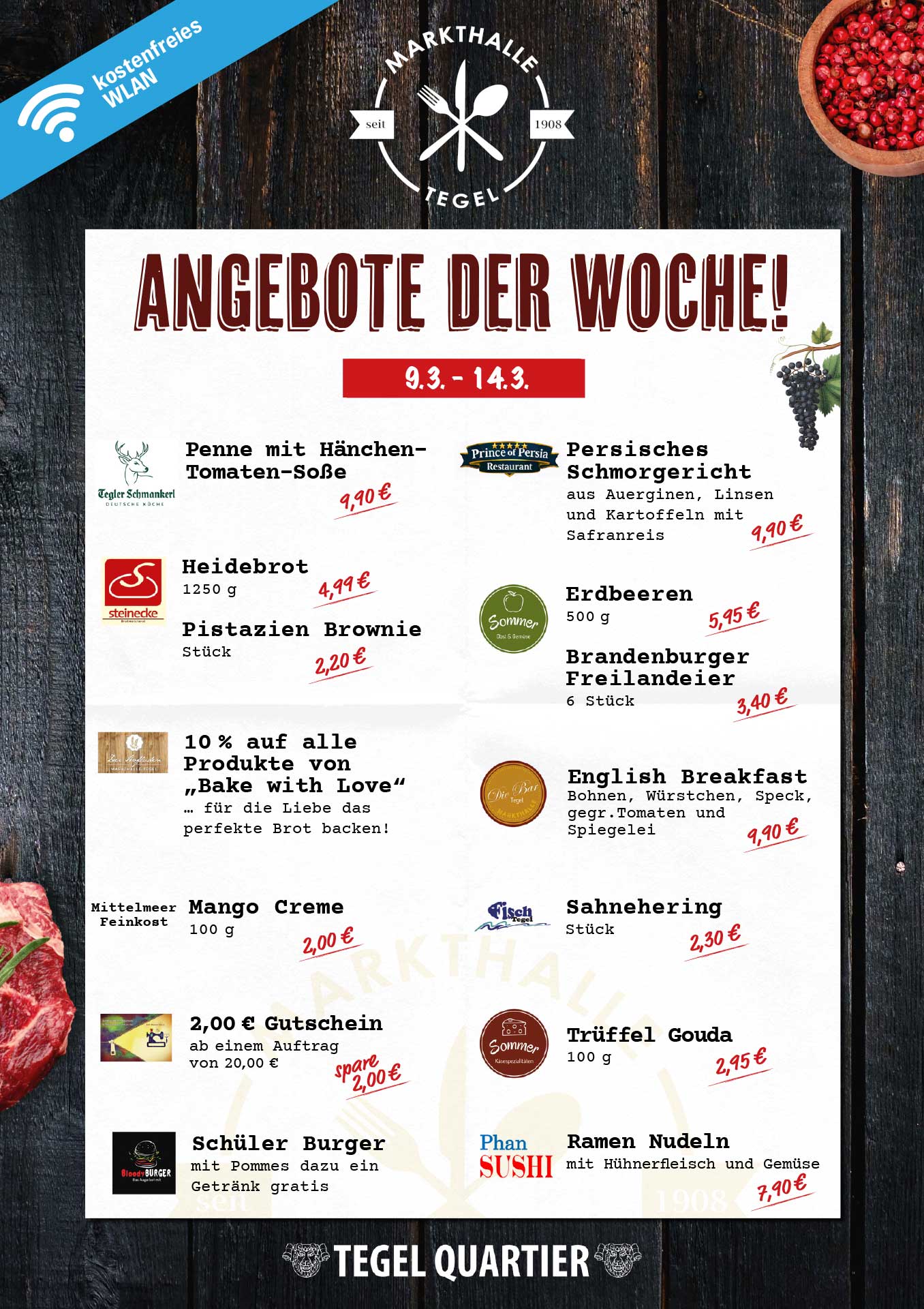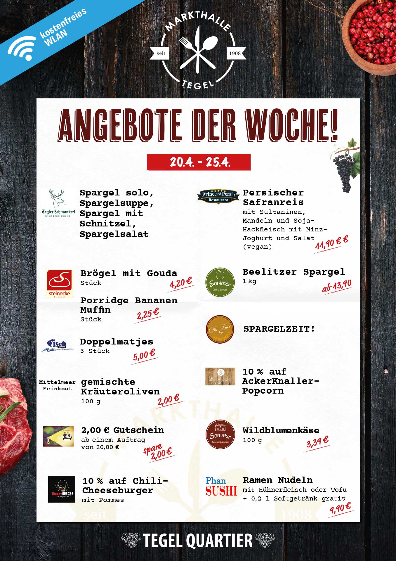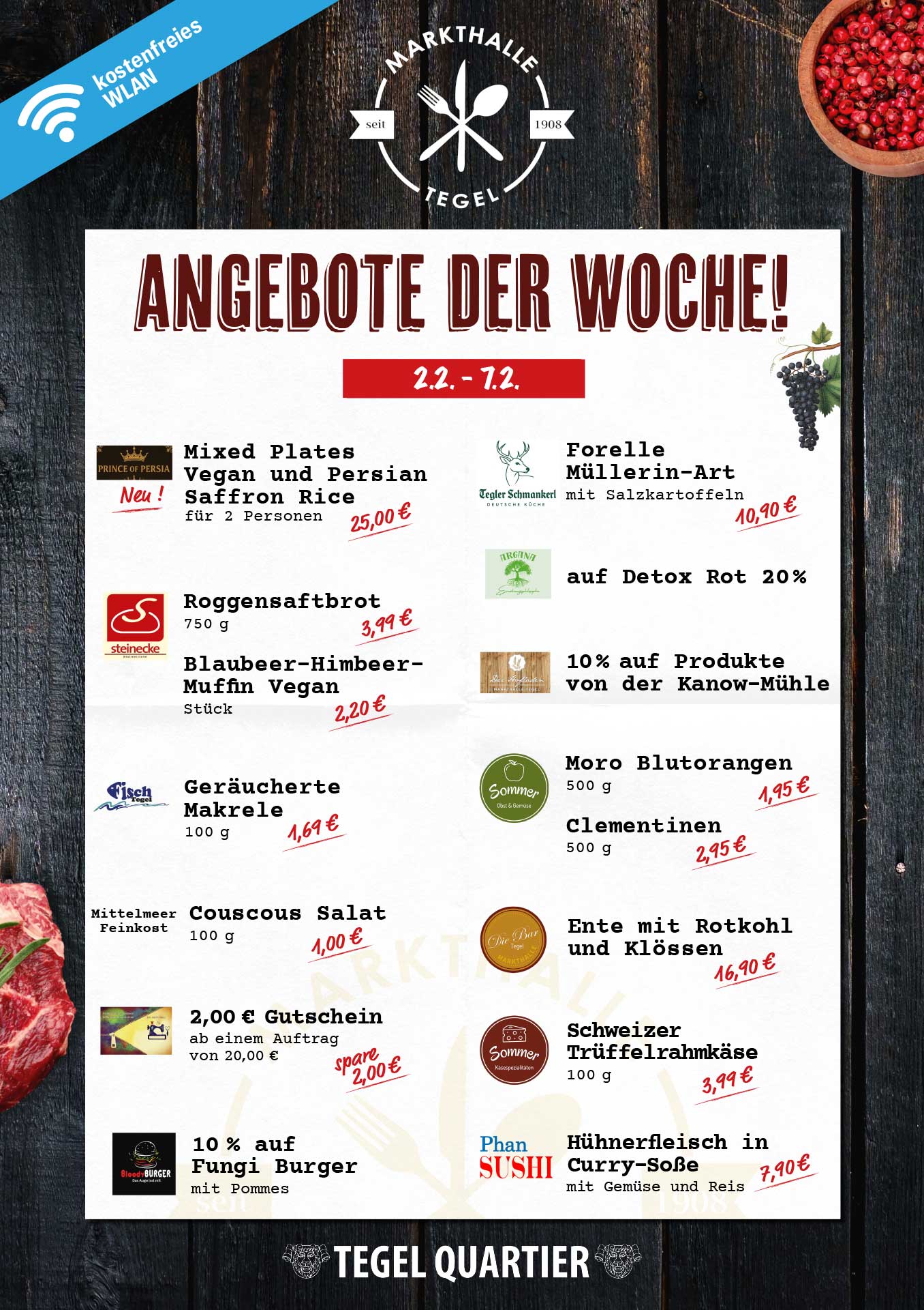 Hier finden Sie die aktuellen Angebote der Wochen in der Markthalle Tegel. Mehr erfahren …