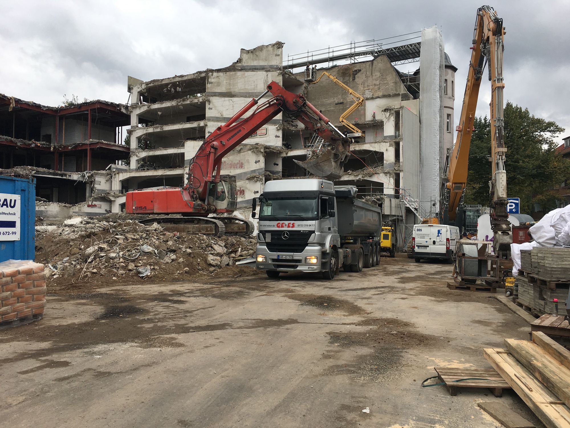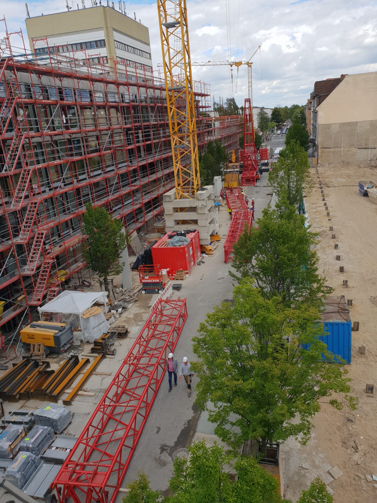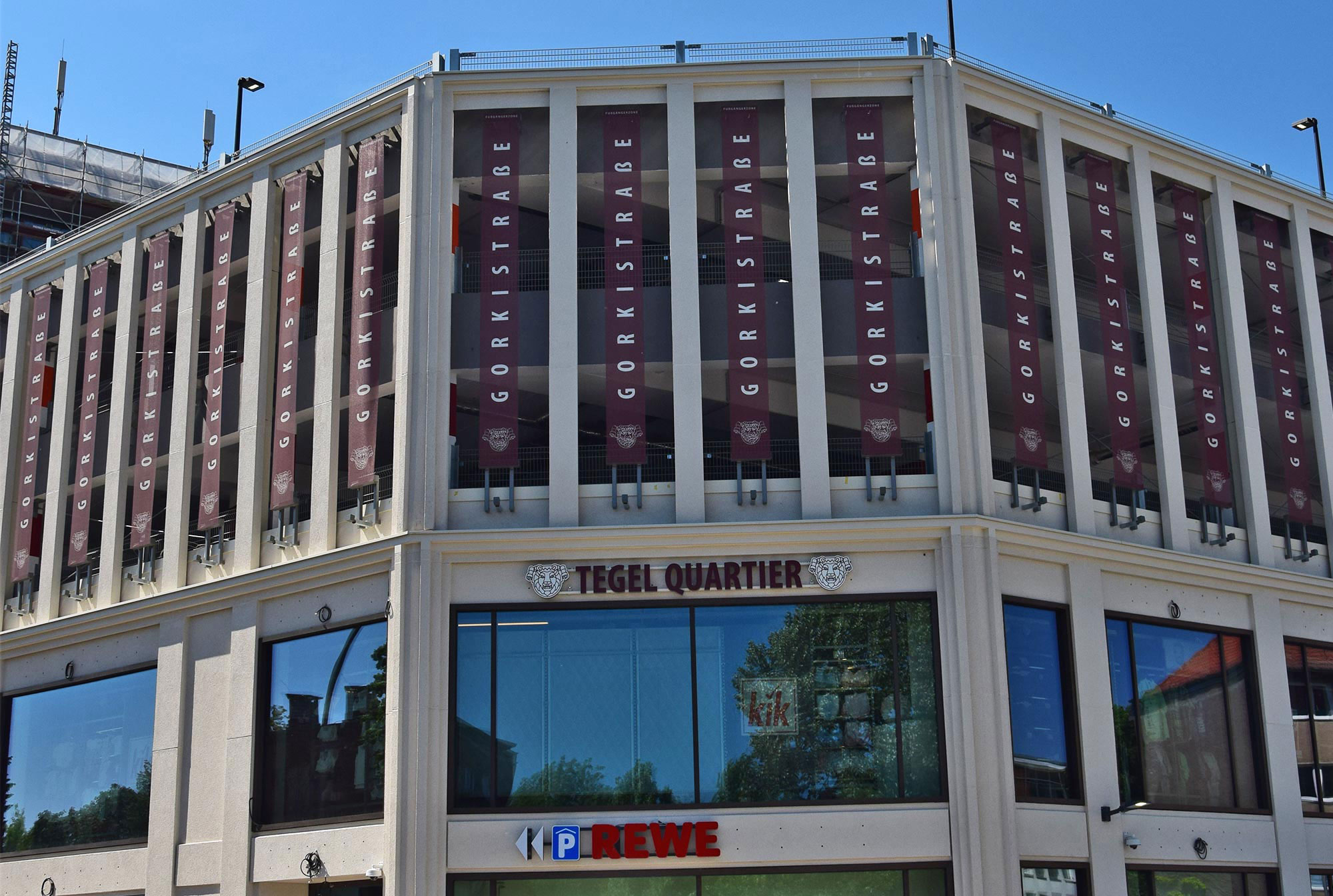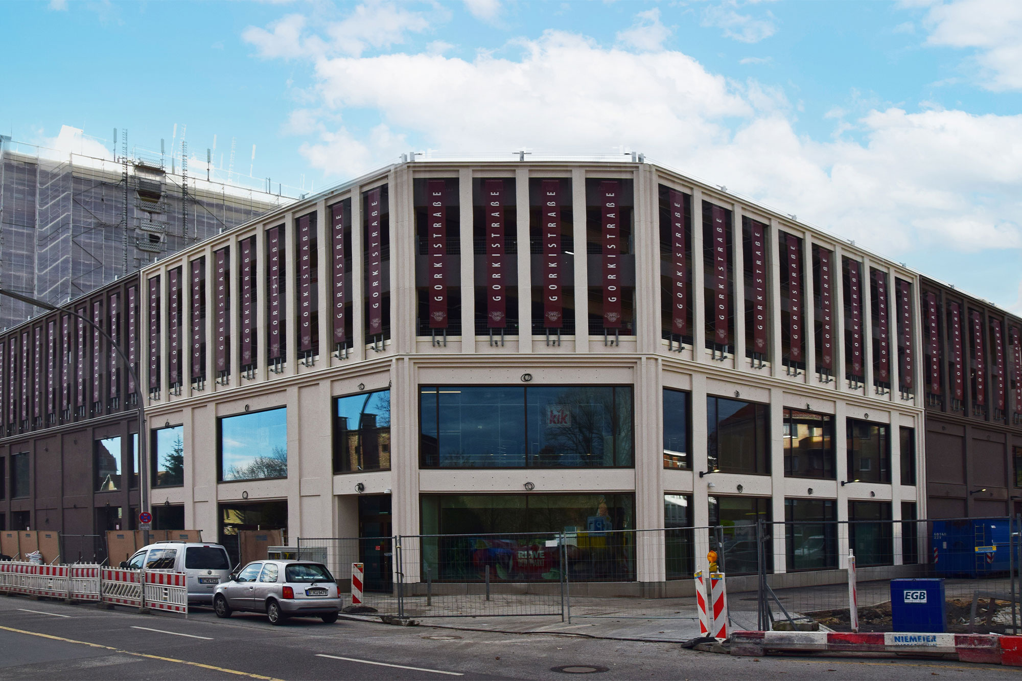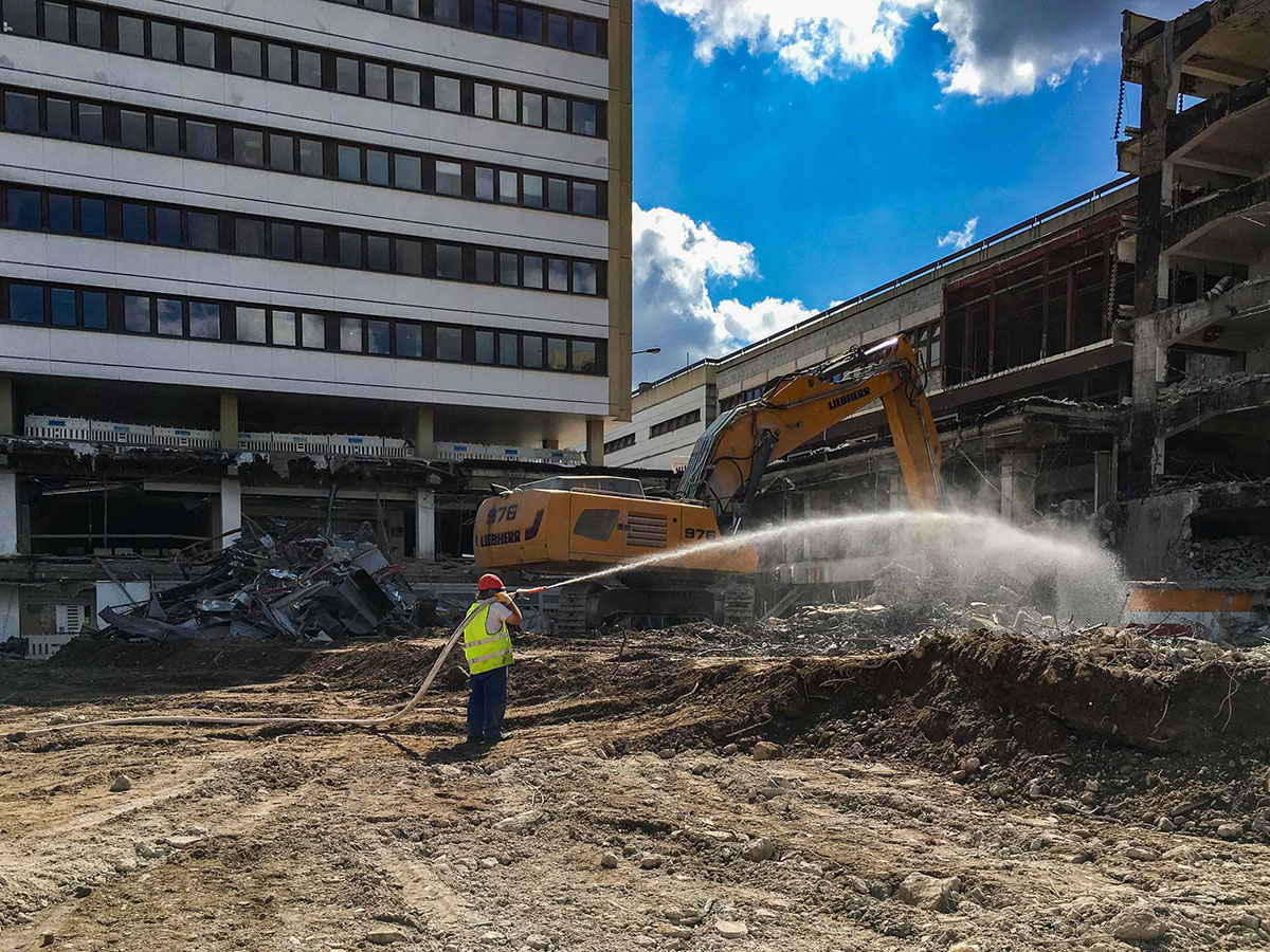 Es gibt große Neuigkeiten aus der Gorkistraße: Die Baustraße in der Fußgängerzone ist heute fertig geworden und der Bauzaun wurde aufgestellt. Unter dem Einsatz spezieller Technik starten am 31. Juli die Abbrucharbeiten des alten Parkhauses. Die Entkernungsarbeiten in diesem Bereich sind fast abgeschlossen. Als nächster Schritt in der Bauplanung steht die Baustelleneinrichtung für den Südteil des Areals in Tegel an. Auch hier haben die Entkernungsarbeiten bereits begonnen.