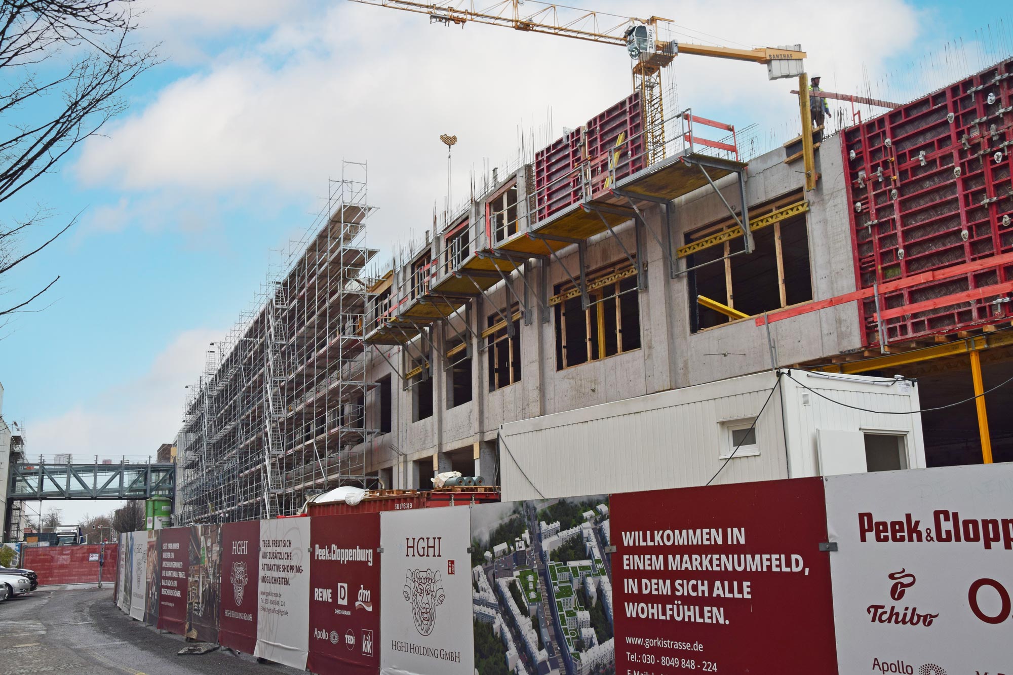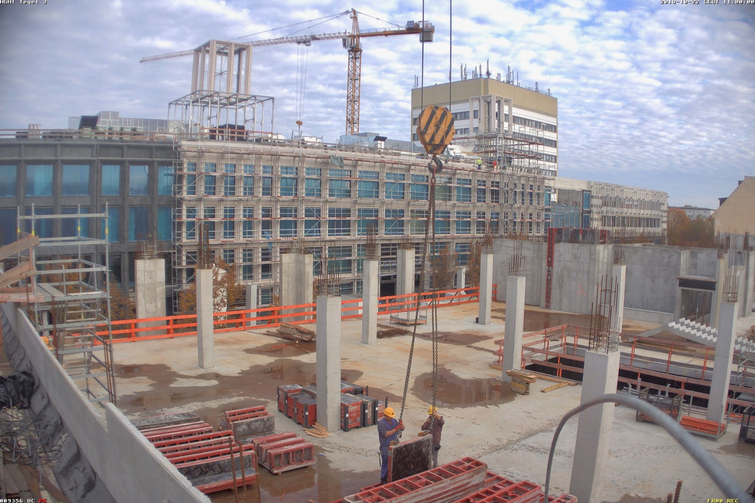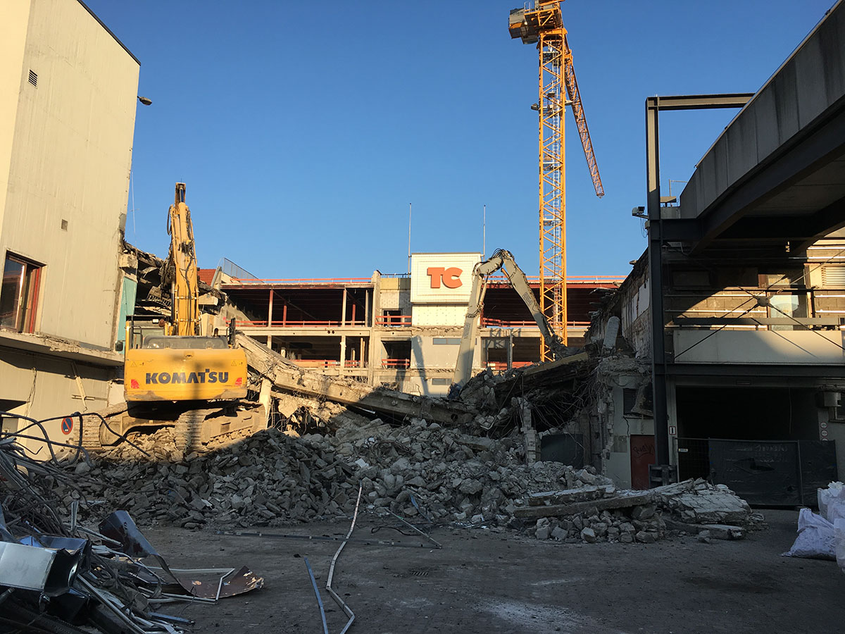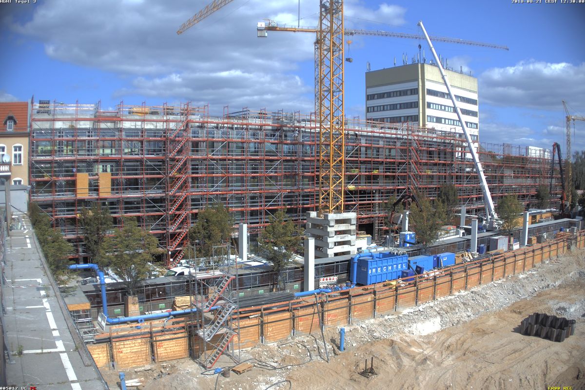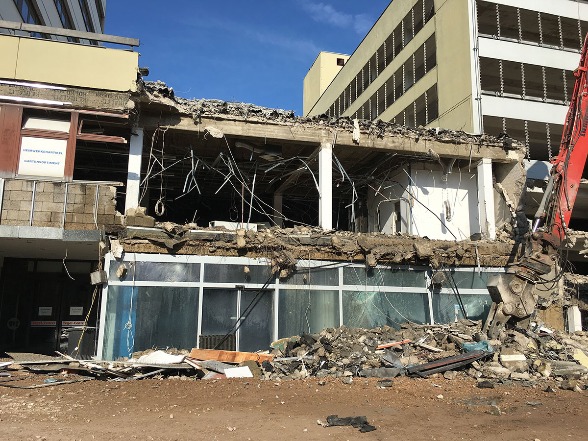 Im Nordteil des ehemaligen Tegel-Centers und entlang der Gorkistraße fand in den letzten Wochen und Monaten der Abbruch der Fassade sowie Entkernungsarbeiten des Bestandsgebäudes der ehemaligen Einkaufsstätte statt. Auch die Rohbauarbeiten, wie Stützenverstärkungen und Abfangungen sowie Fundamentunterfangungen mittels Hochdruckinjektionsverfahren (HDI) haben hier bereits begonnen. Hierbei wird der Baugrund verbessert und durch Erdbeton, eine Mischung aus Erdreich und Zementsuspension, ersetzt. Das alte Parkhaus an der Buddestraße/Bernstorffstraße wurde vollständig abgebrochen und die Baugrube für den Neubau erschaffen. Im Südteil des Komplexes wurde das Abbruchgebäude entkernt und die Interimsfläche von Tchibo im ehemaligen Hertie-Haus fertiggestellt.