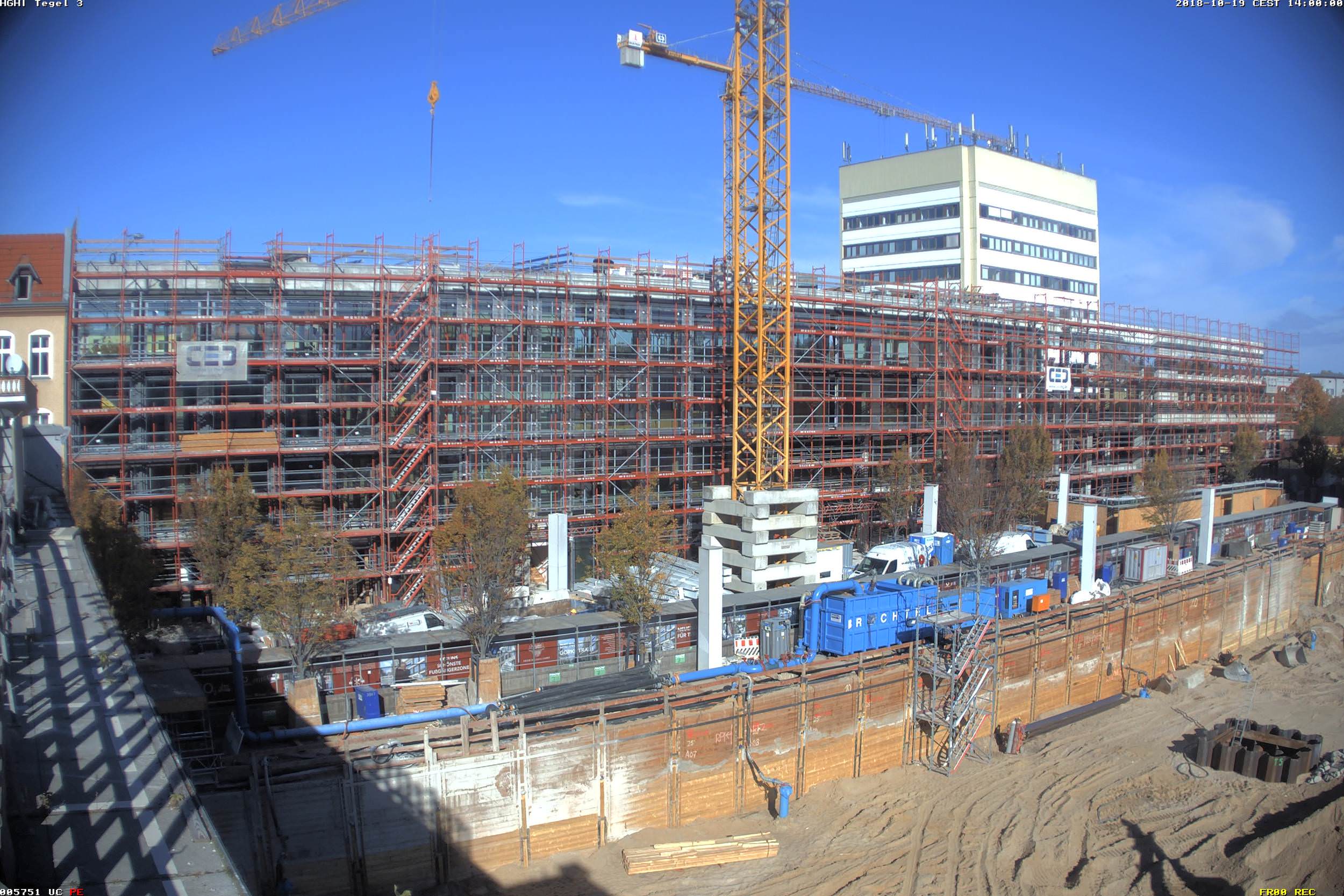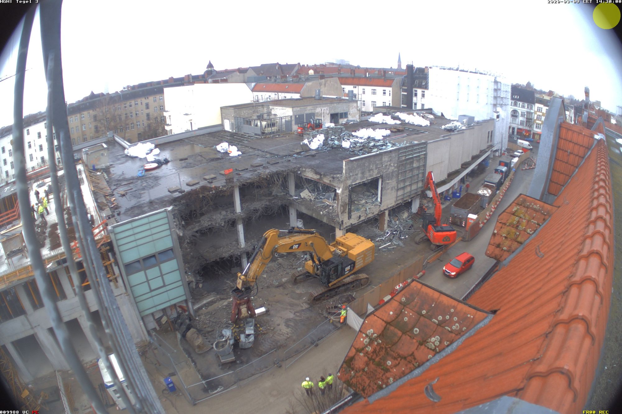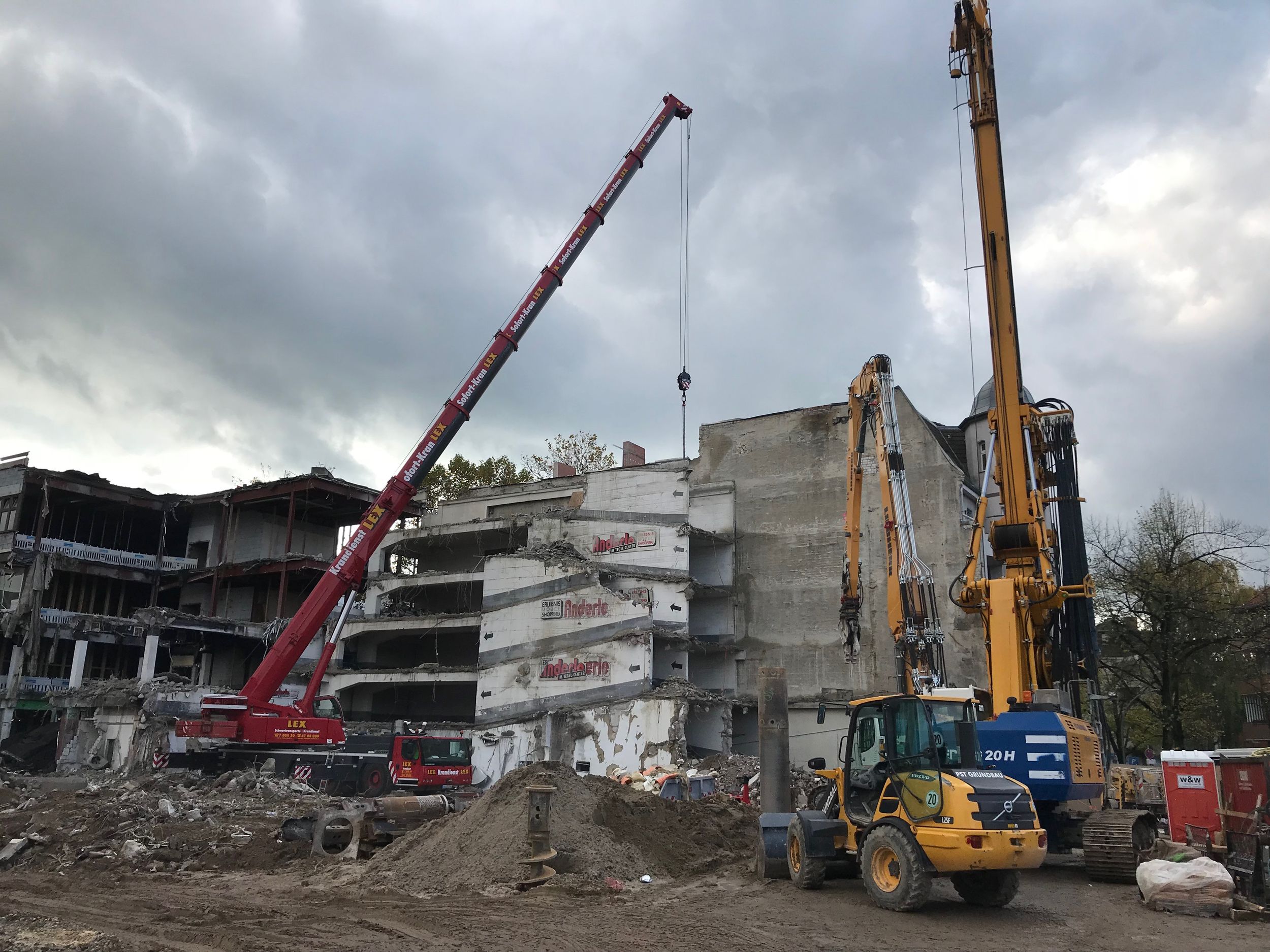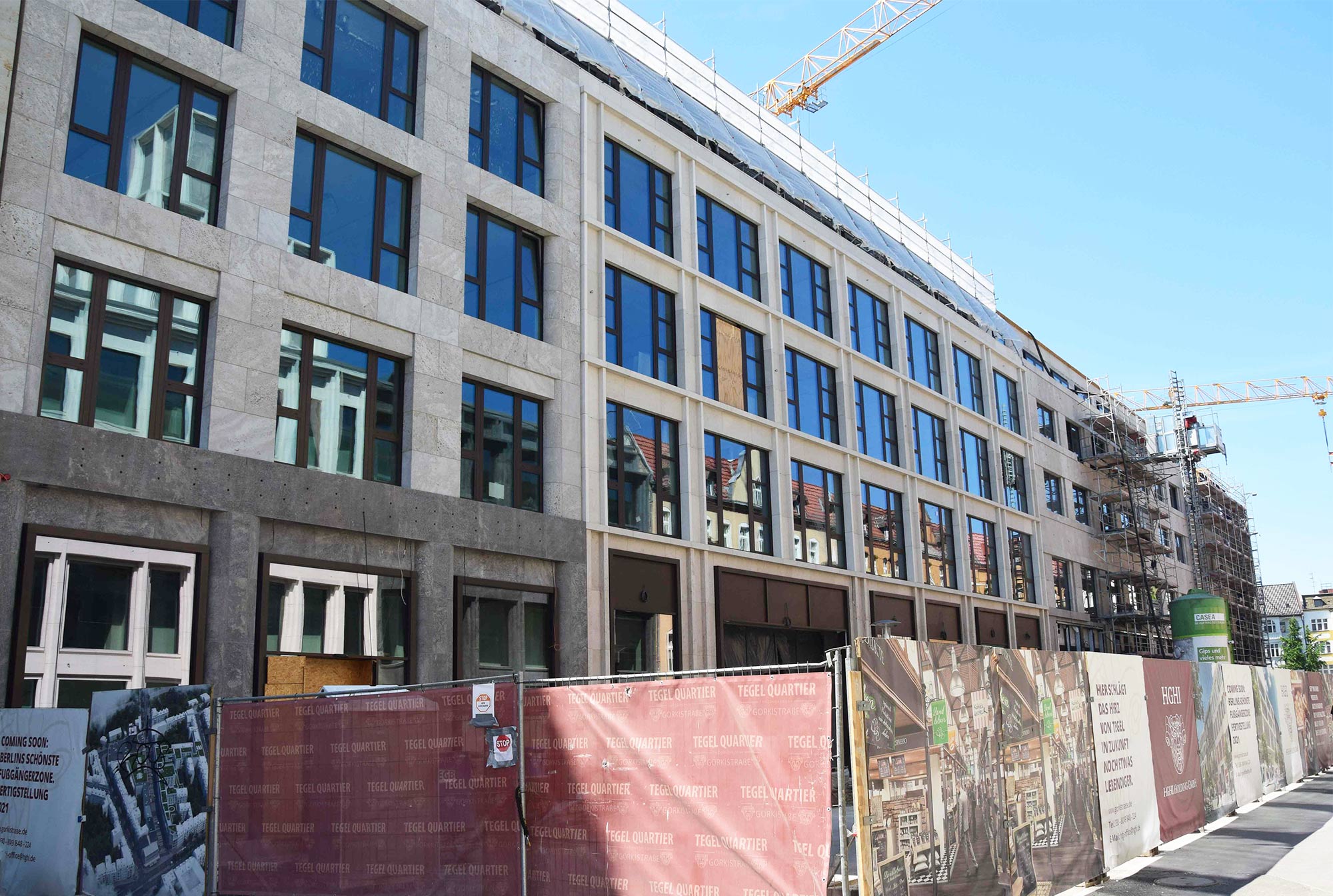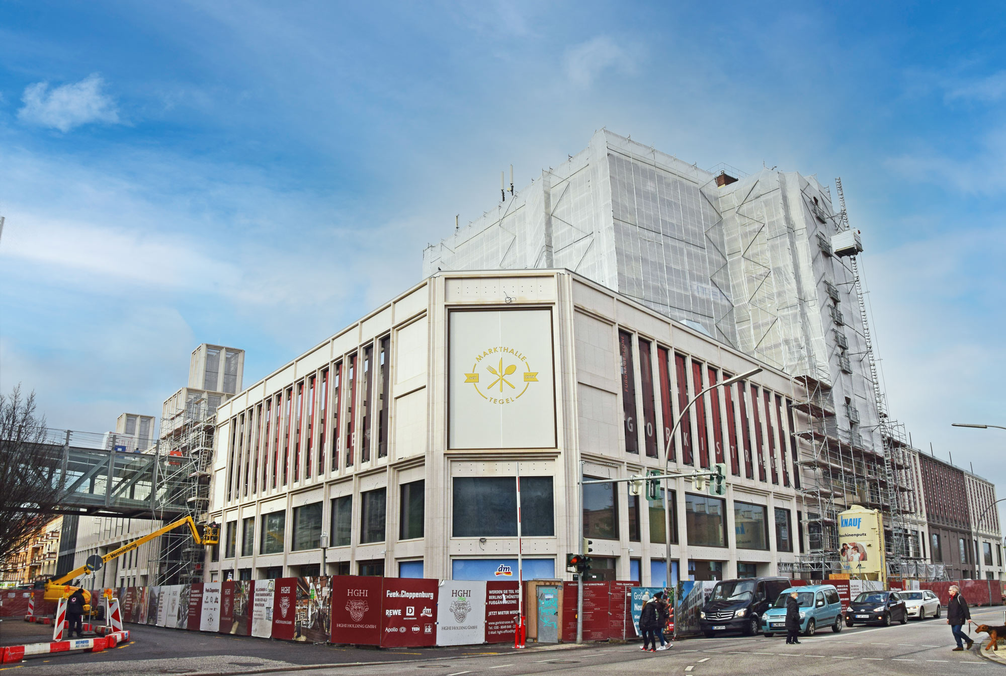 Im Nordteil des ehemaligen Tegel-Centers und entlang der Gorkistraße fand in den letzten Wochen und Monaten der Abbruch der Fassade sowie Entkernungsarbeiten des Bestandsgebäudes der ehemaligen Einkaufsstätte statt. Auch die Rohbauarbeiten, wie Stützenverstärkungen und Abfangungen sowie Fundamentunterfangungen mittels Hochdruckinjektionsverfahren (HDI) haben hier bereits begonnen. Hierbei wird der Baugrund verbessert und durch Erdbeton, eine Mischung aus Erdreich und Zementsuspension, ersetzt. Das alte Parkhaus an der Buddestraße/Bernstorffstraße wurde vollständig abgebrochen und die Baugrube für den Neubau erschaffen. Im Südteil des Komplexes wurde das Abbruchgebäude entkernt und die Interimsfläche von Tchibo im ehemaligen Hertie-Haus fertiggestellt.