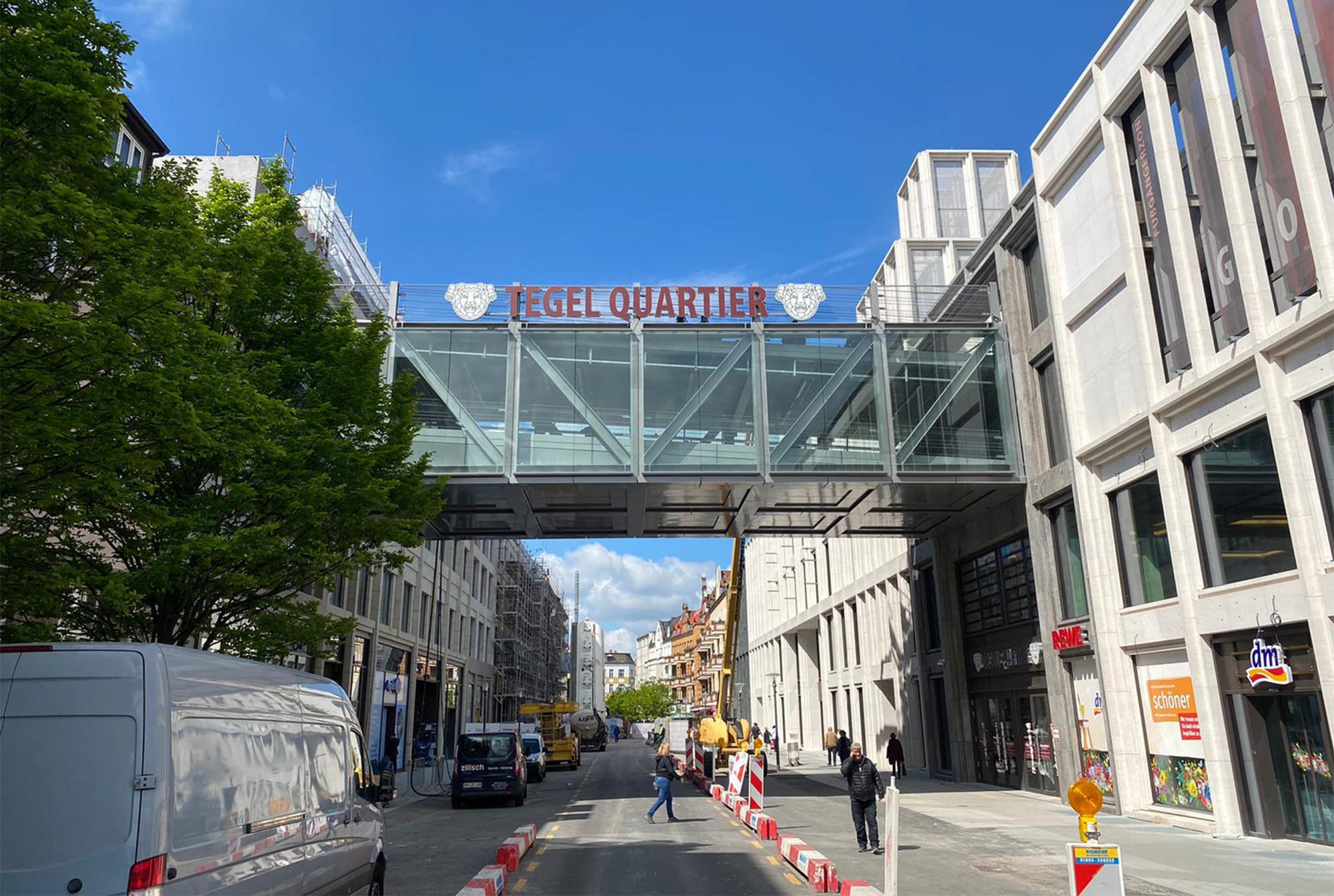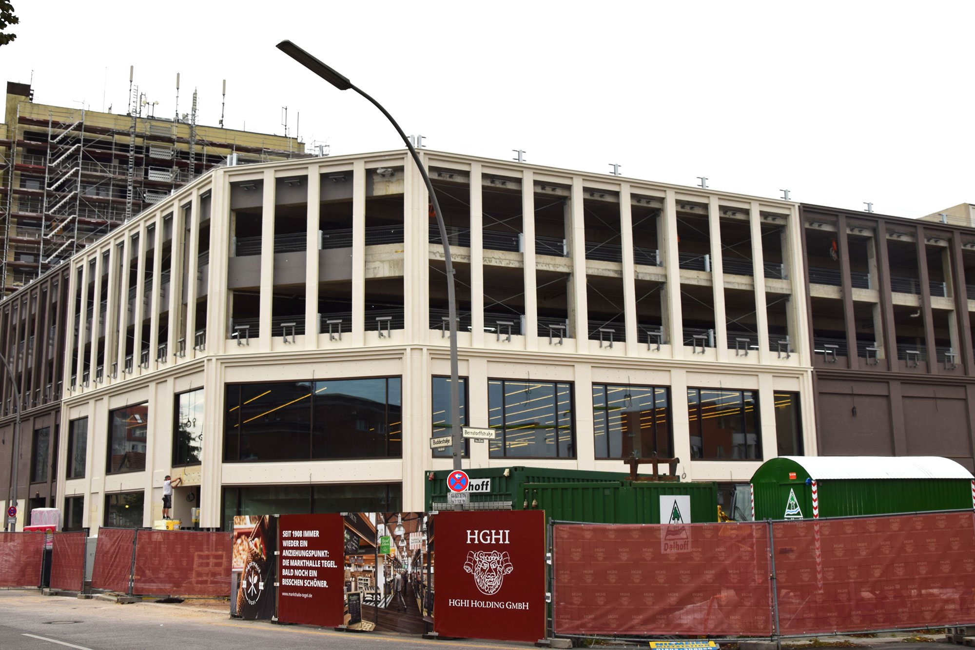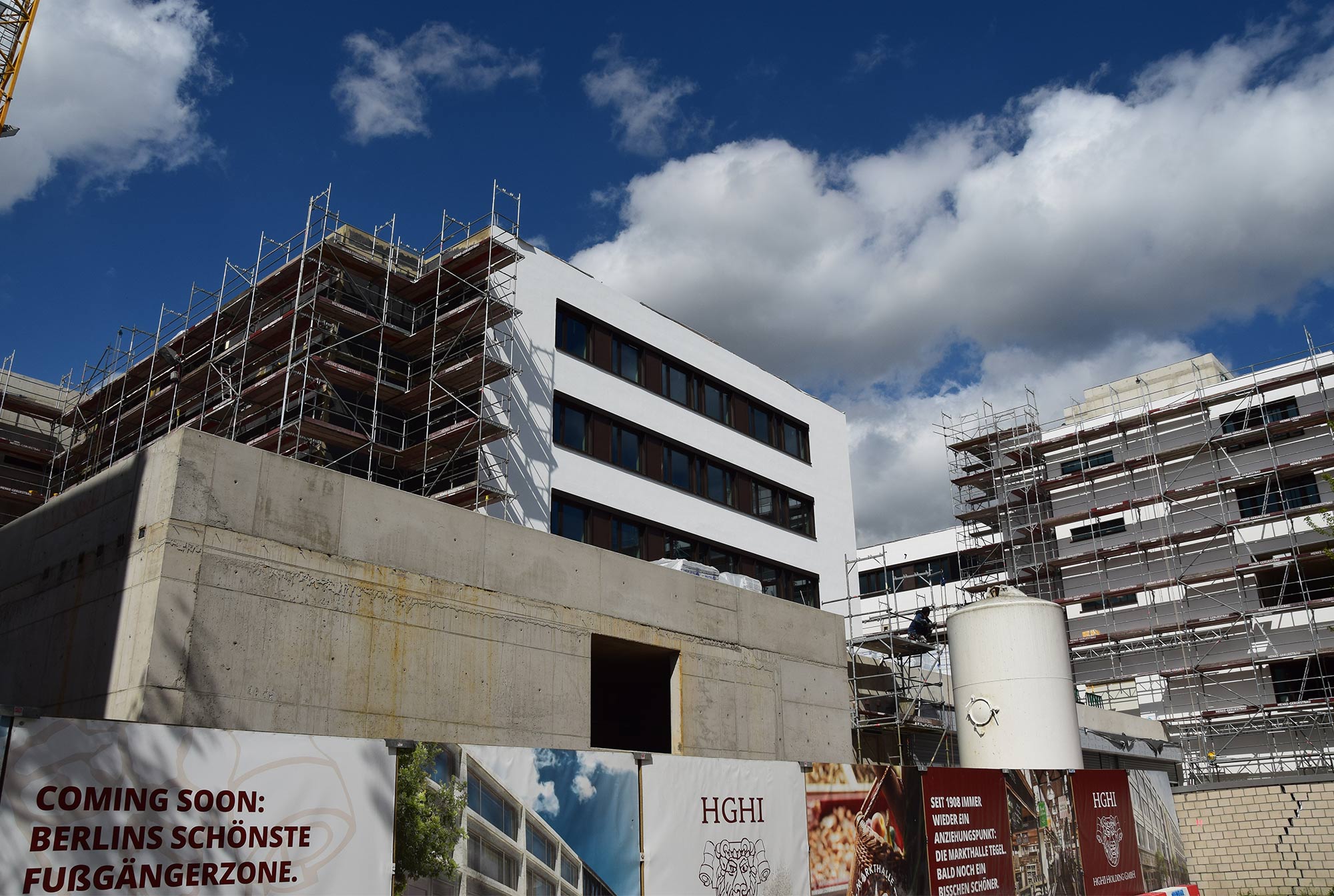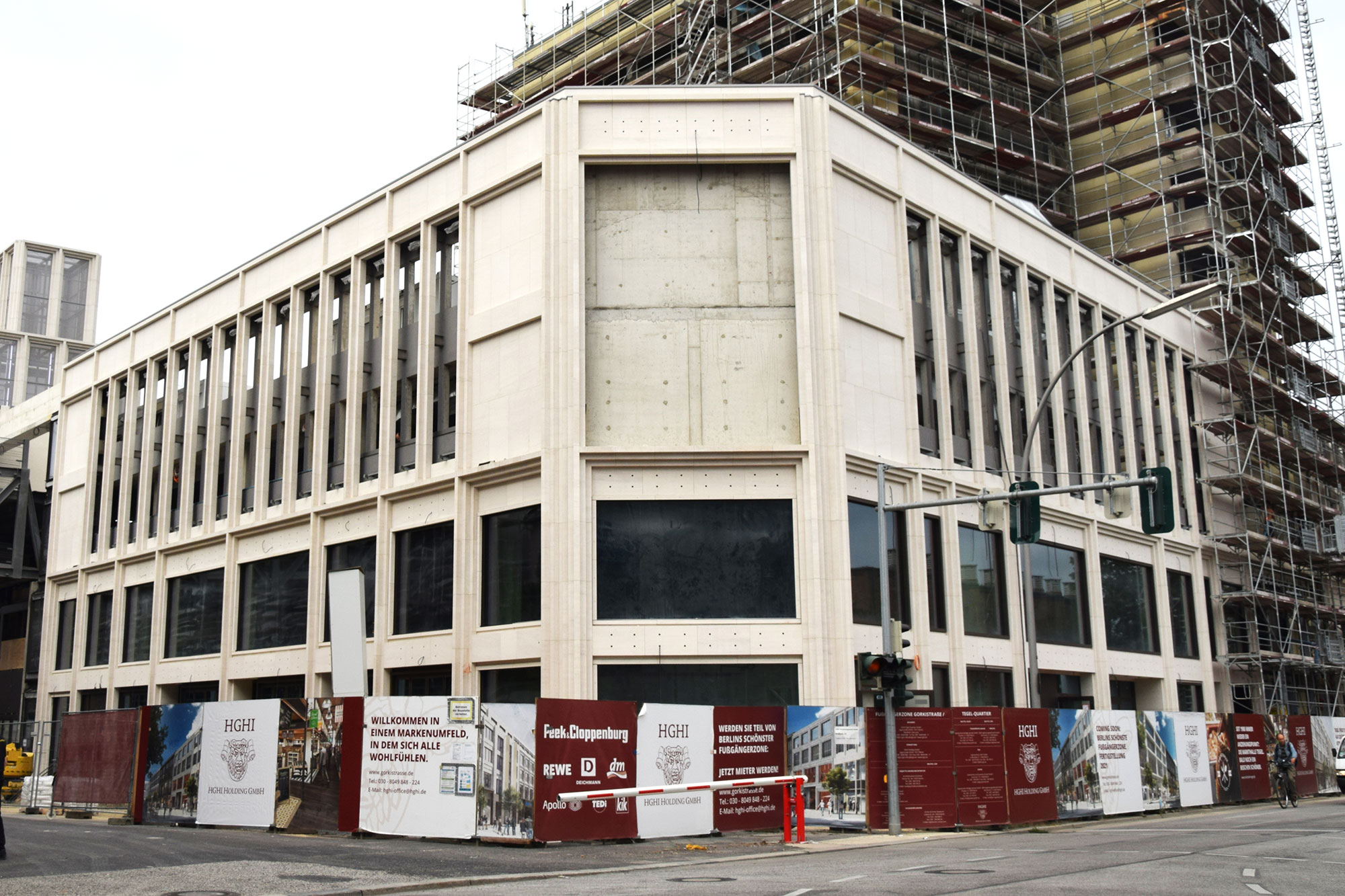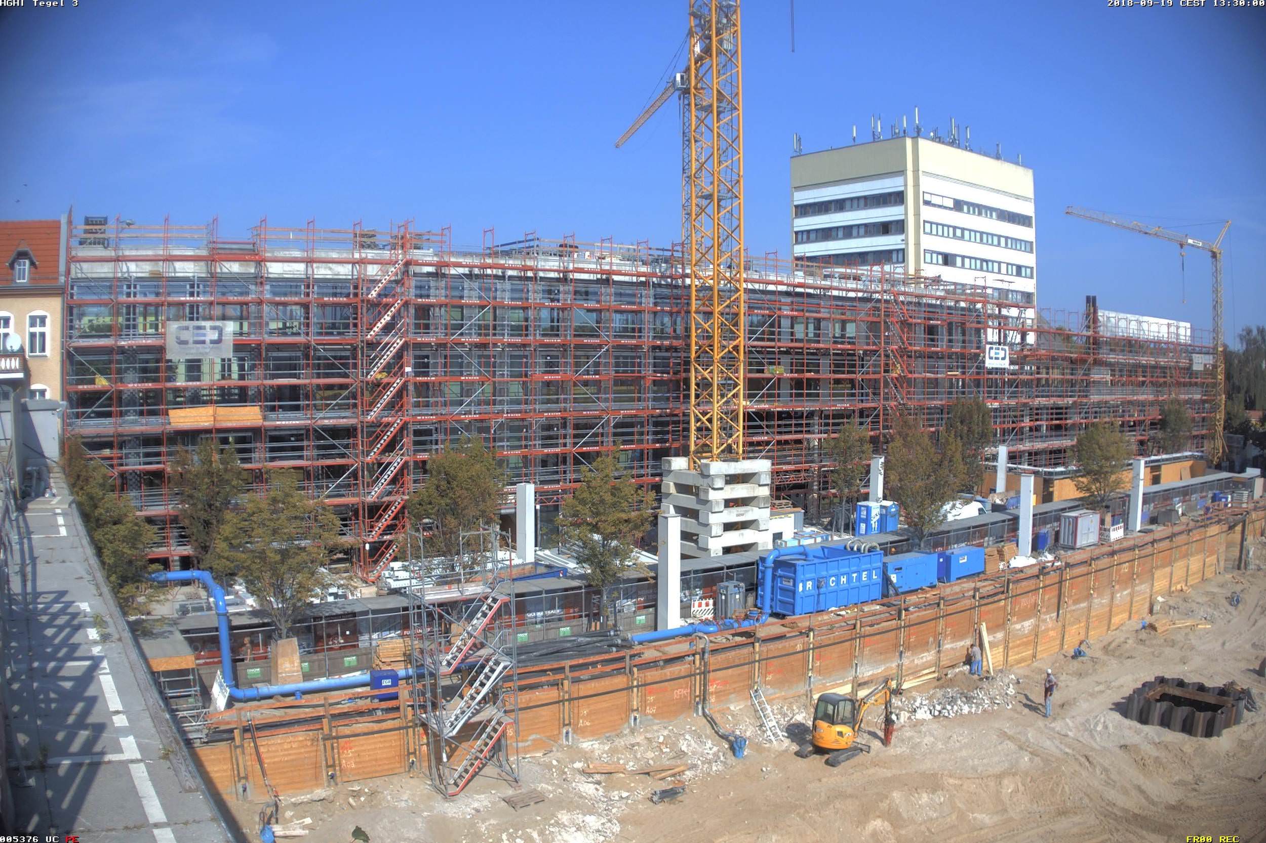 Im Nordteil des ehemaligen Tegel-Centers und entlang der Gorkistraße fand in den letzten Wochen und Monaten der Abbruch der Fassade sowie Entkernungsarbeiten des Bestandsgebäudes der ehemaligen Einkaufsstätte statt. Auch die Rohbauarbeiten, wie Stützenverstärkungen und Abfangungen sowie Fundamentunterfangungen mittels Hochdruckinjektionsverfahren (HDI) haben hier bereits begonnen. Hierbei wird der Baugrund verbessert und durch Erdbeton, eine Mischung aus Erdreich und Zementsuspension, ersetzt. Das alte Parkhaus an der Buddestraße/Bernstorffstraße wurde vollständig abgebrochen und die Baugrube für den Neubau erschaffen. Im Südteil des Komplexes wurde das Abbruchgebäude entkernt und die Interimsfläche von Tchibo im ehemaligen Hertie-Haus fertiggestellt.