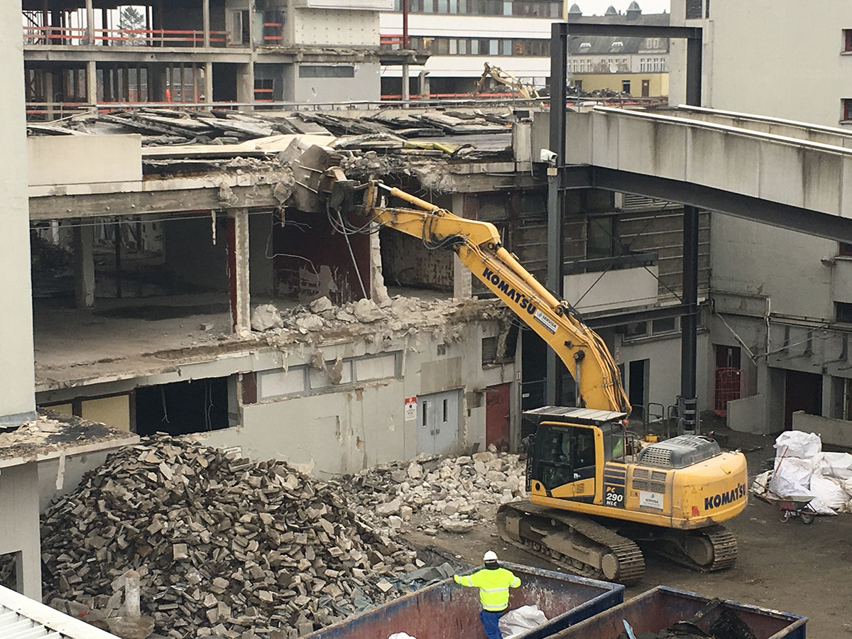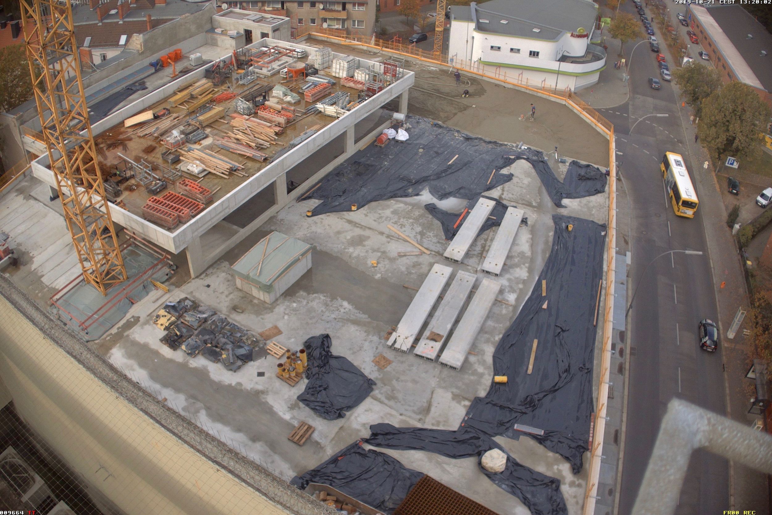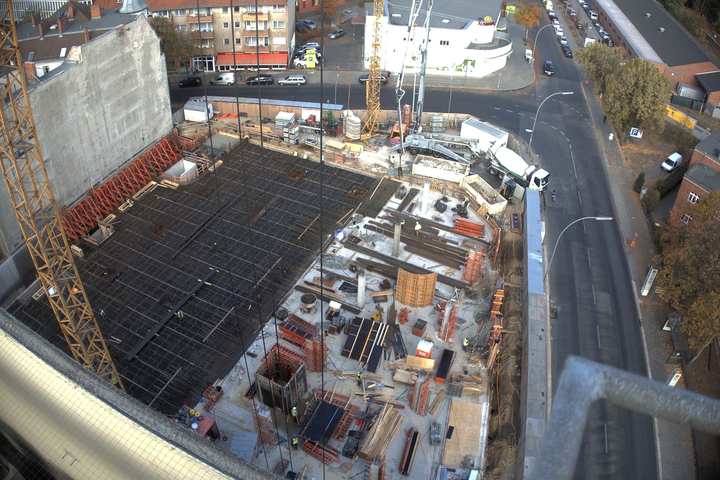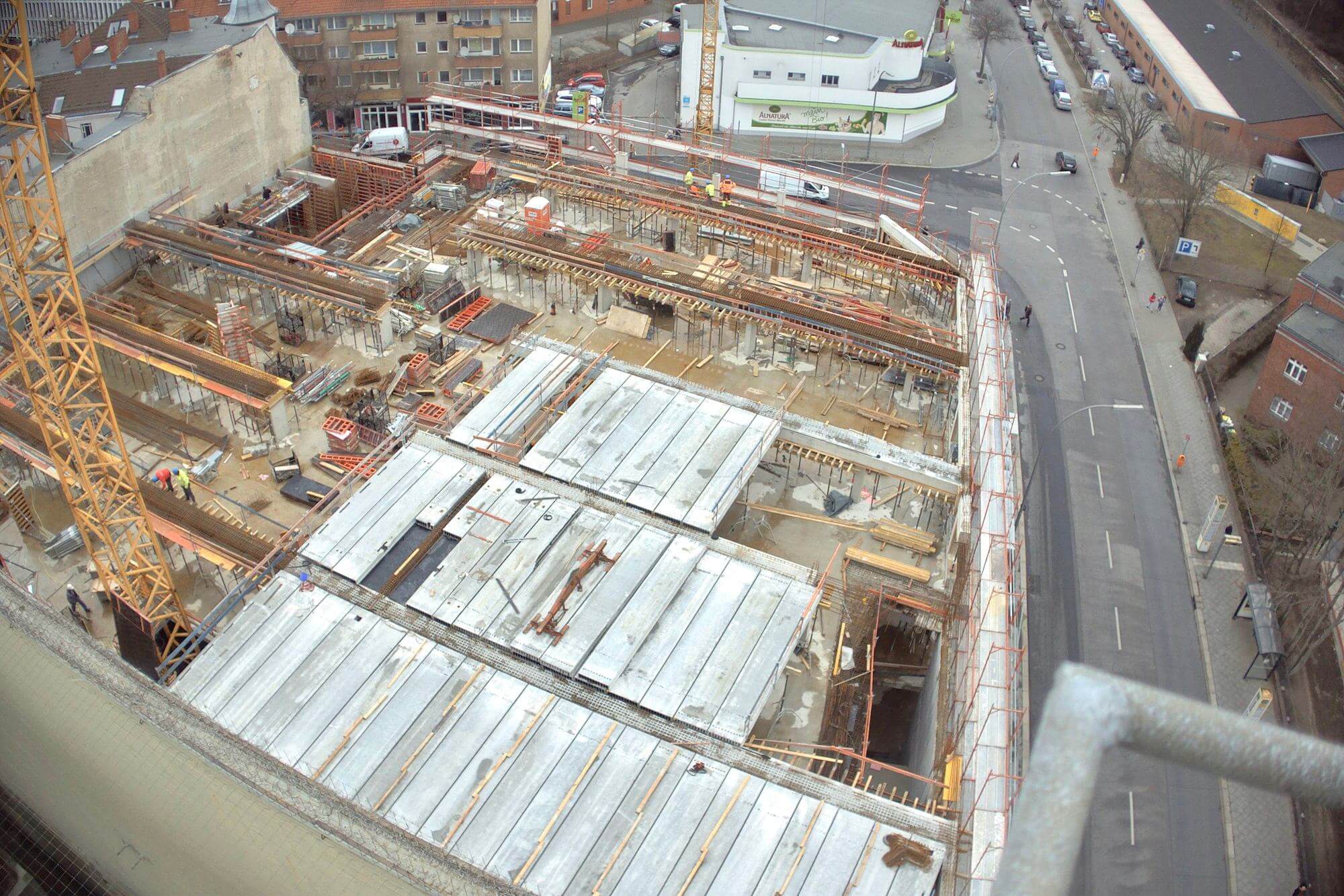 Im Bauteil Nord wurden im Untergeschoss die Bodenplatten weitestgehend betoniert und die ersten Stützen zum Tragen der zukünftigen Decke im Erdgeschoss aufgestellt. Darüberhinaus erfolgten für die weiteren Arbeiten in der Baugrube der Aufbau und die Montage eines Baukrans. Auf dem Parkdeck wurde im dritten Obergeschoss die Decke betoniert. Im Bauteil Süd wurden die Aushubarbeiten für das Erstellen der Baugrube durchgeführt. Dazu wurden die Seiten der Baugrube verkleidet und verbaut (Sandrutschschutz).
