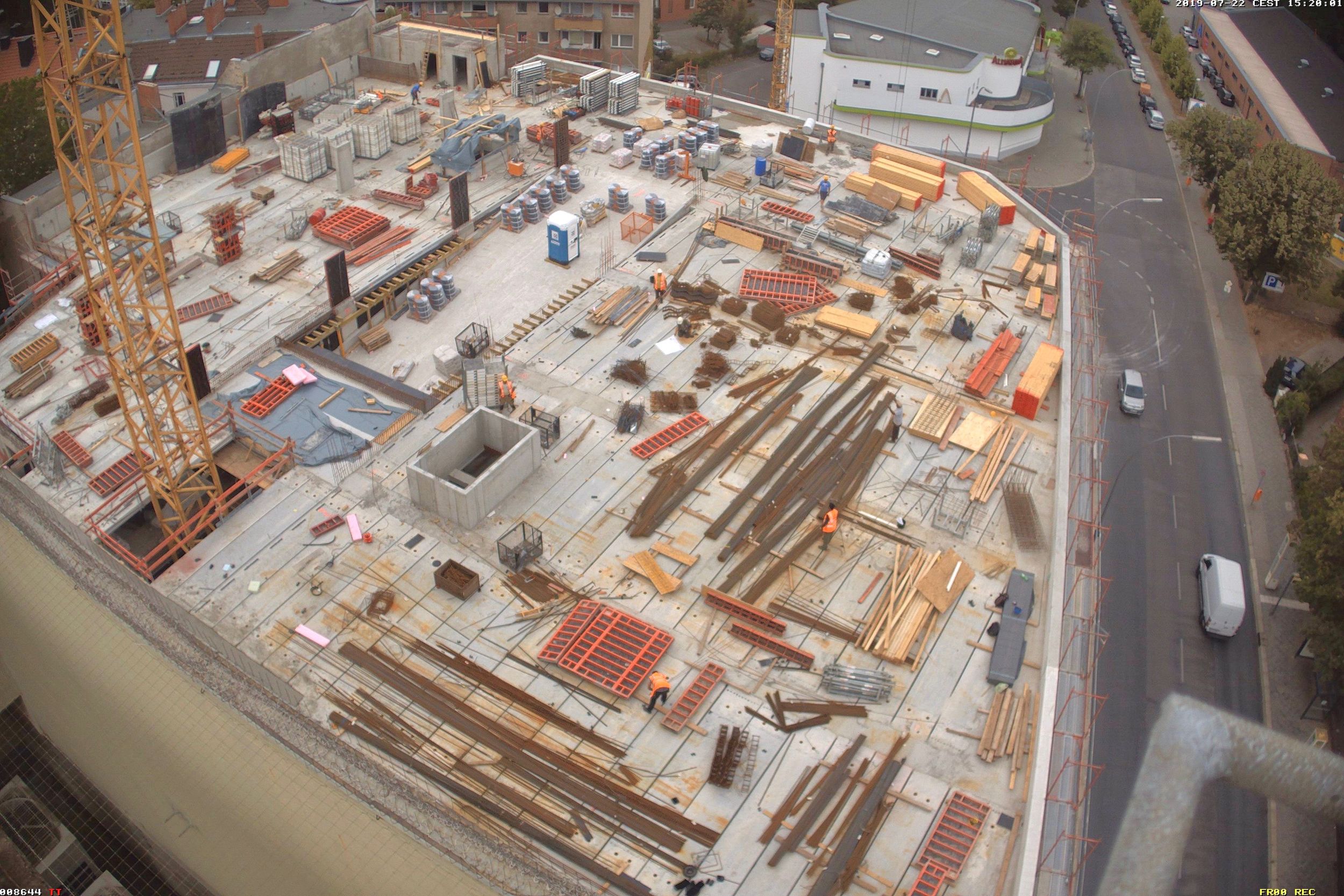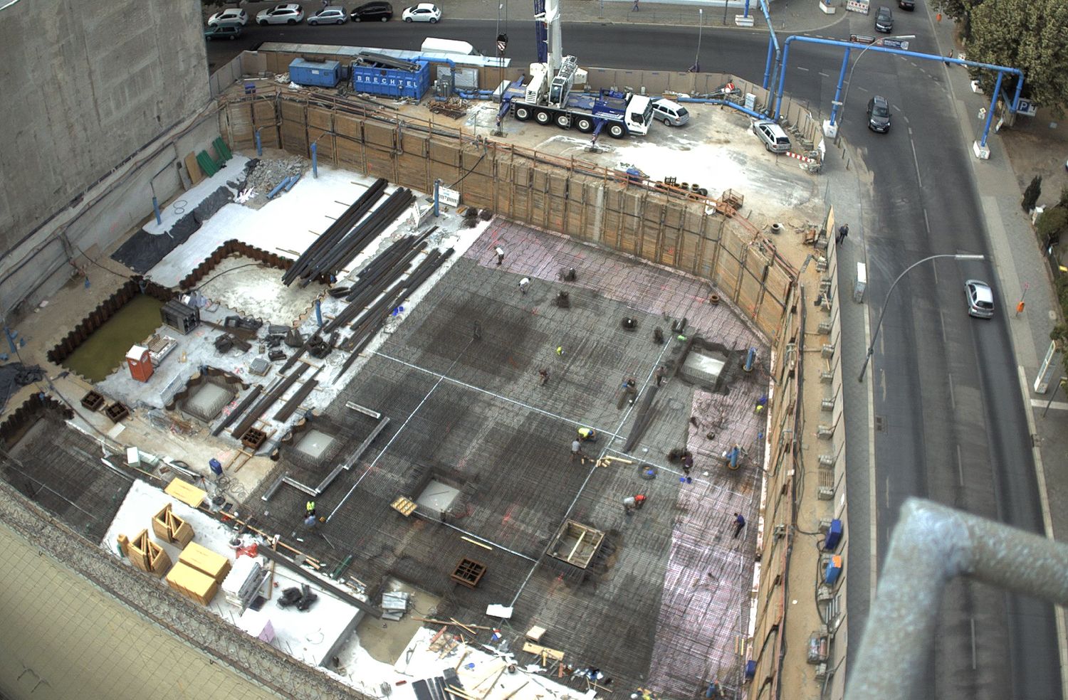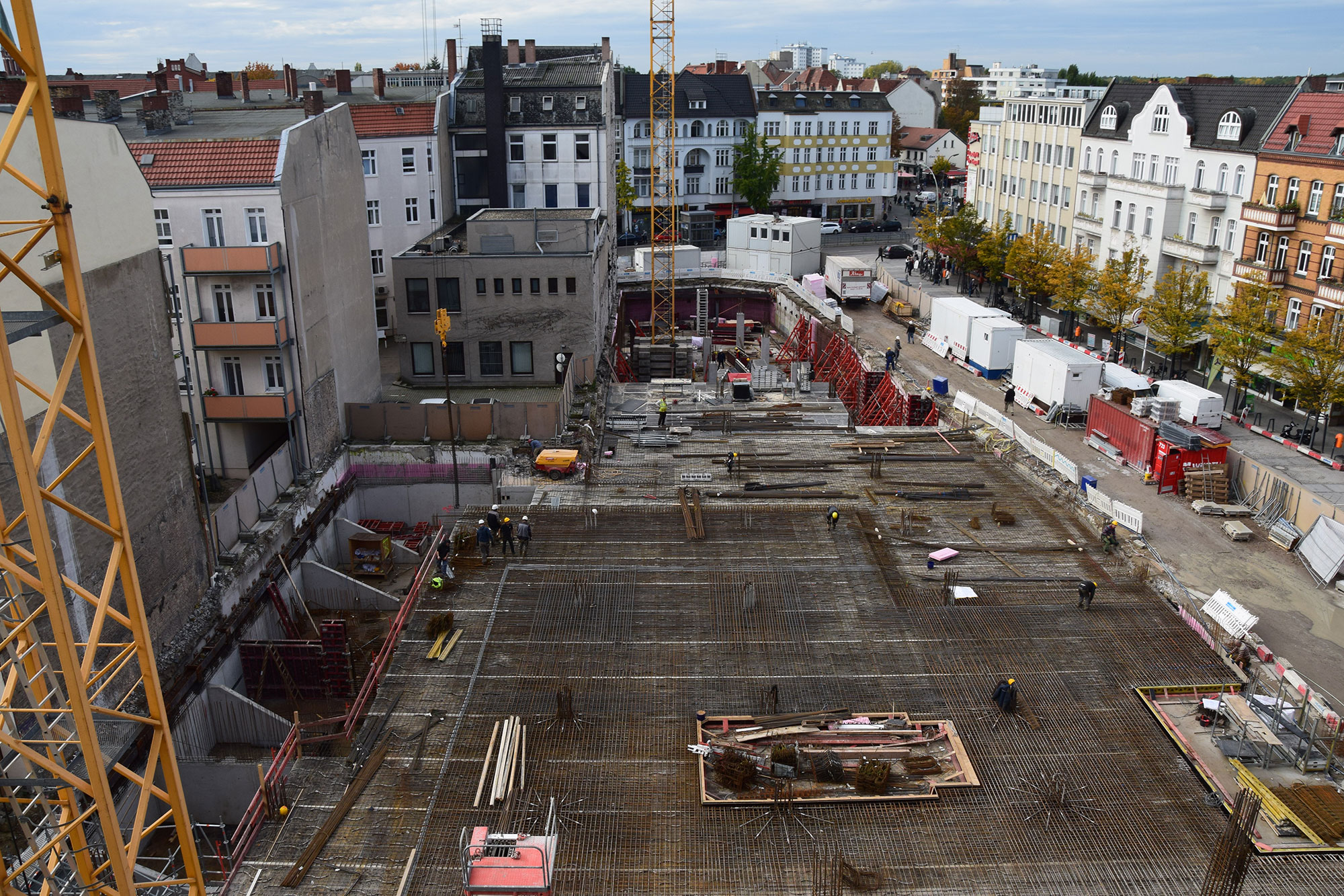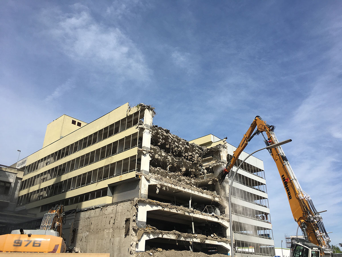 Im Bauteil Nord wurden im Untergeschoss die Bodenplatten weitestgehend betoniert und die ersten Stützen zum Tragen der zukünftigen Decke im Erdgeschoss aufgestellt. Darüberhinaus erfolgten für die weiteren Arbeiten in der Baugrube der Aufbau und die Montage eines Baukrans. Auf dem Parkdeck wurde im dritten Obergeschoss die Decke betoniert. Im Bauteil Süd wurden die Aushubarbeiten für das Erstellen der Baugrube durchgeführt. Dazu wurden die Seiten der Baugrube verkleidet und verbaut (Sandrutschschutz).