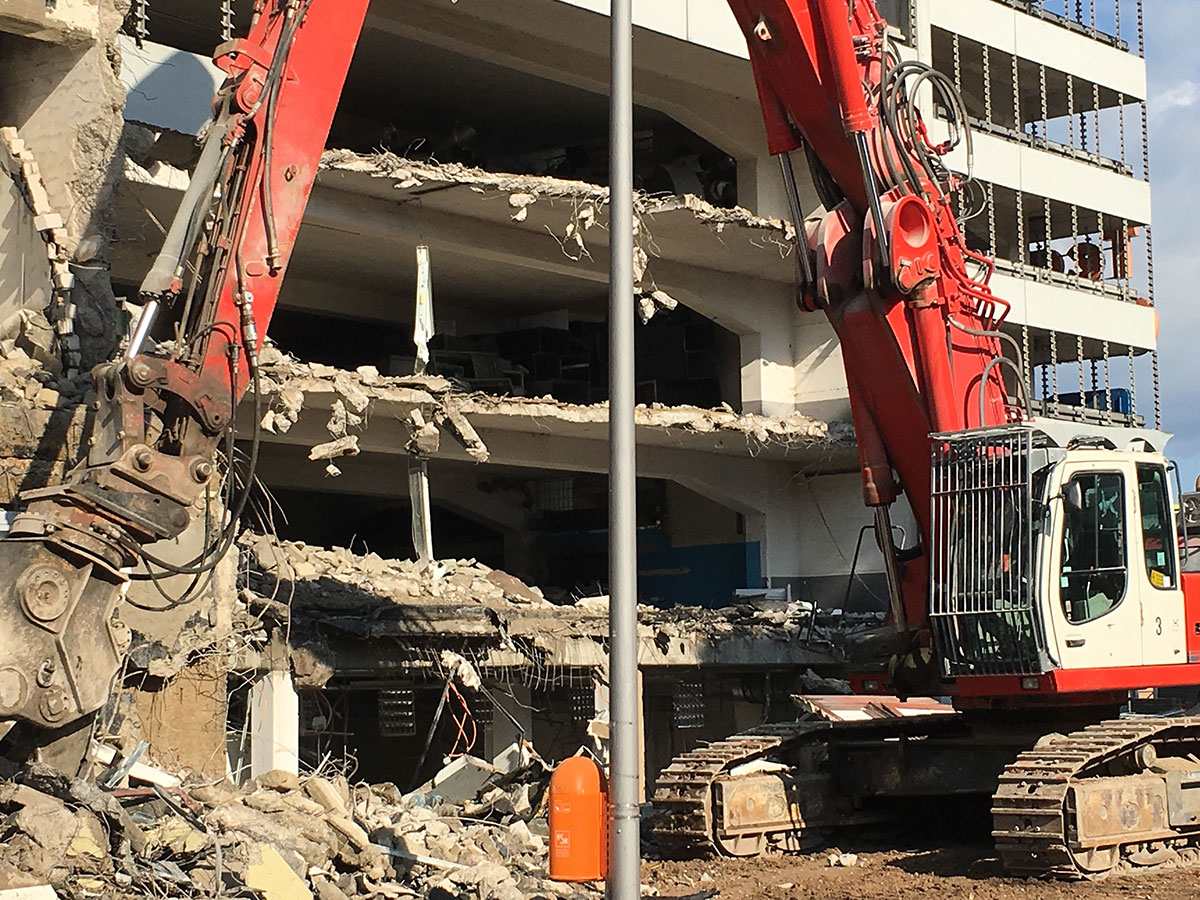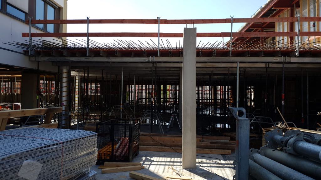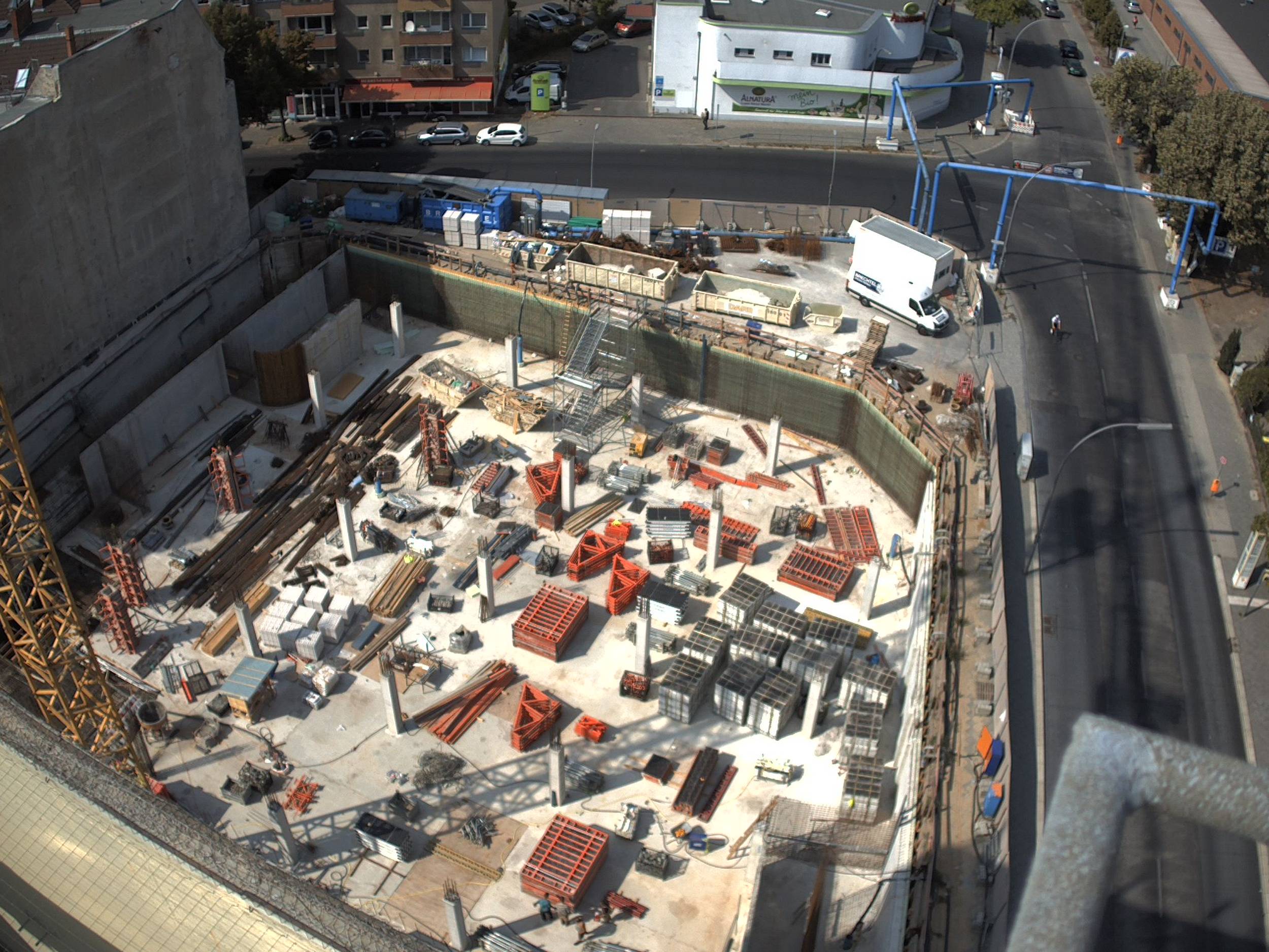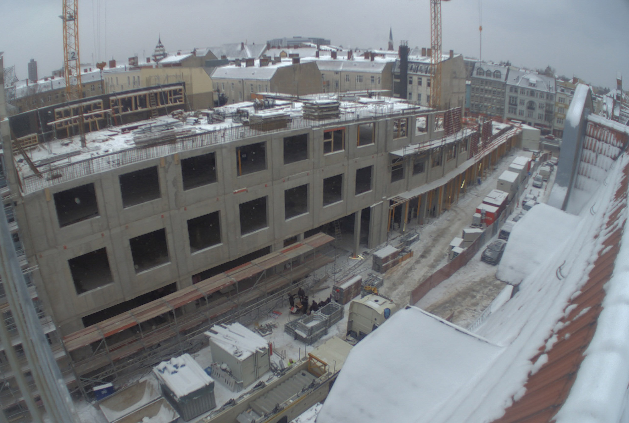 Im Bauteil Nord wurden im Untergeschoss die Bodenplatten weitestgehend betoniert und die ersten Stützen zum Tragen der zukünftigen Decke im Erdgeschoss aufgestellt. Darüberhinaus erfolgten für die weiteren Arbeiten in der Baugrube der Aufbau und die Montage eines Baukrans. Auf dem Parkdeck wurde im dritten Obergeschoss die Decke betoniert. Im Bauteil Süd wurden die Aushubarbeiten für das Erstellen der Baugrube durchgeführt. Dazu wurden die Seiten der Baugrube verkleidet und verbaut (Sandrutschschutz).
