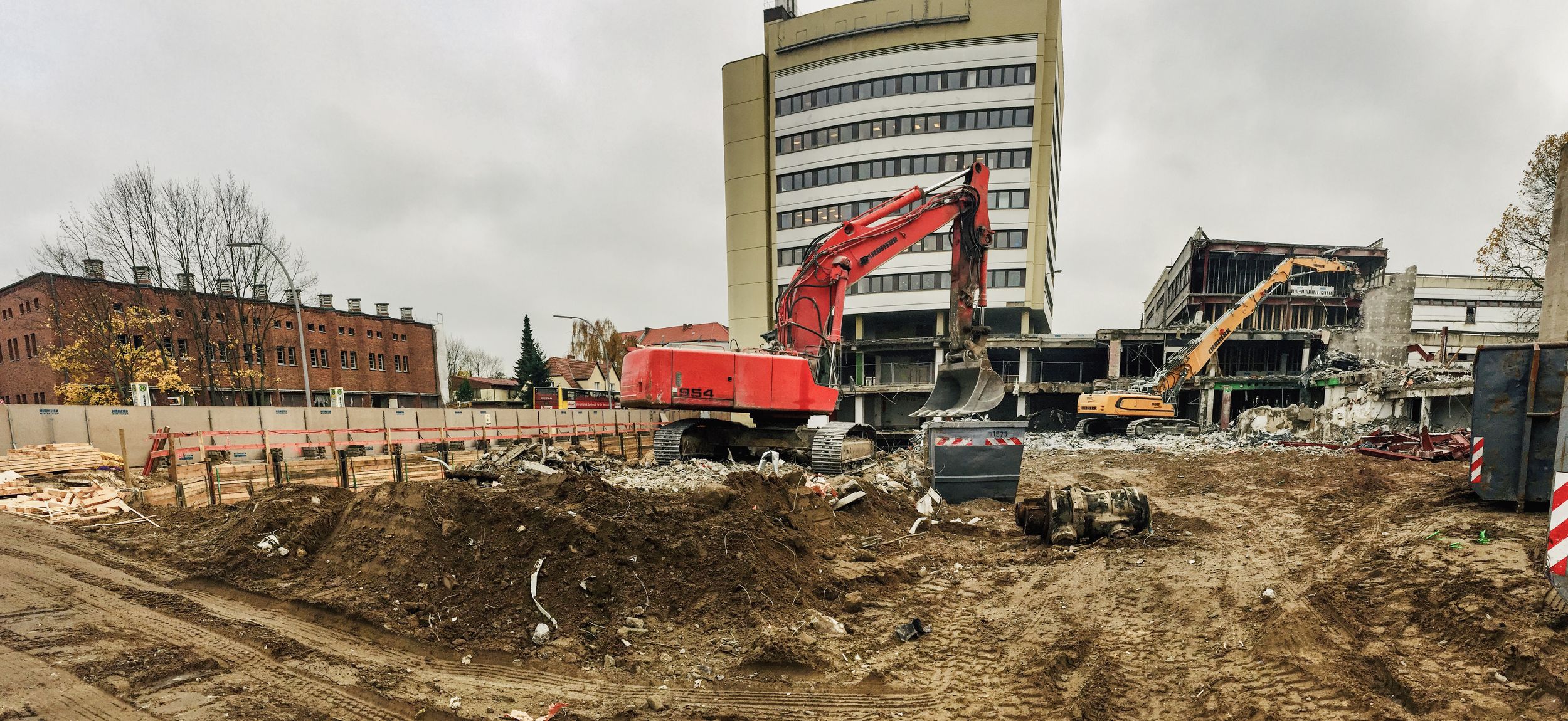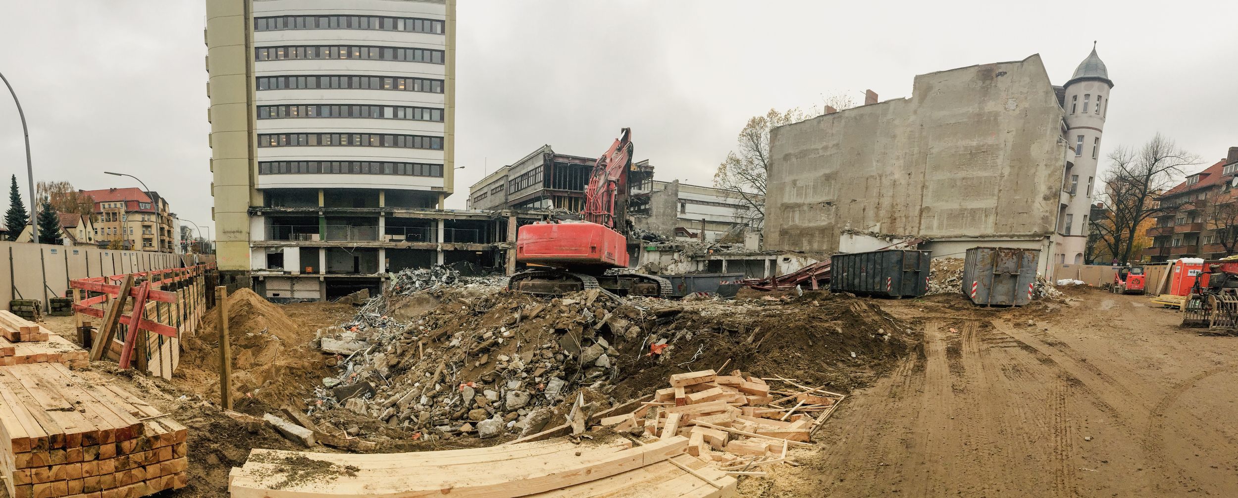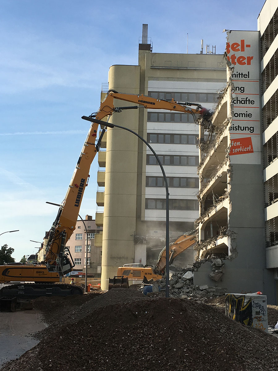 Im Bauteil Süd wurden im November die Rohbauarbeiten aufgenommen. So wurden unter anderem erste Fundamente betoniert und erste Teilleistungen der Außenwände hergestellt. Die Arbeiten an der Baugrube schreiten weiter voran, die Fertigstellung ist für Frühjahr 2019 geplant. Im Bauteil Nord schreitet der Ausbau der Technischen Gebäudeausstattung (Kälte- und Heiztechnik, Lüftung und Elektro) weiter voran, dazu erfolgt auf der Karstadt-Fläche bis Ende des Jahres der Einbau der Fahrtreppen. Der Ausbau der Trockenwände und die Abdichtung der Dachflächen sind ebenfalls gestartet.