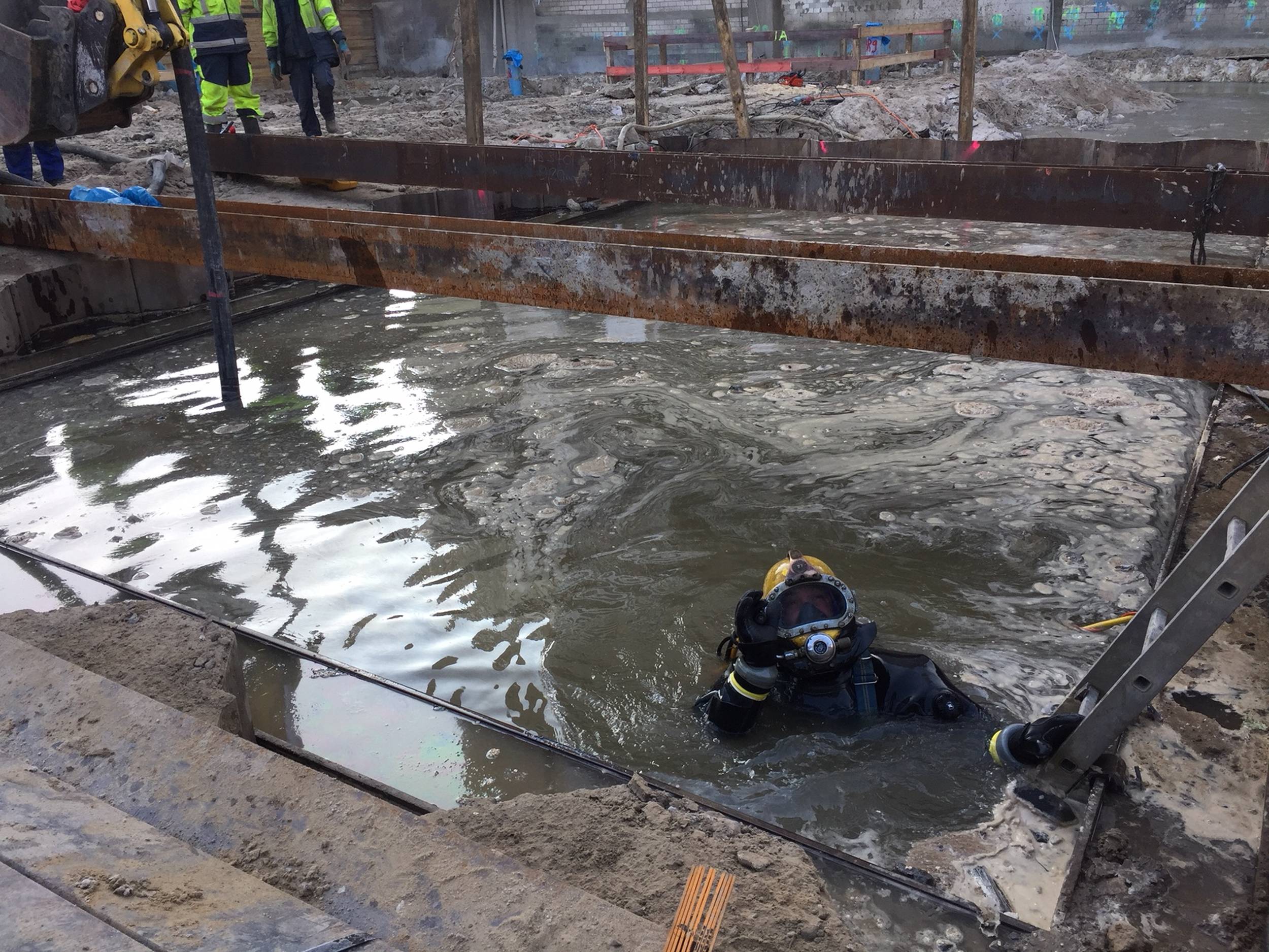 Es geht hoch hinaus im März: Im 2.OG. werden mehrere Absicherungen für die Arbeiter angebracht. Es geht aber auch mindestens genauso tief in die andere Richtung: Die Kernbohrungen für die Beton-Schneidearbeiten an den Aufzügen werden vorbereitet. Dabei sind Minustemperaturen und Schnee nicht unbedingt hilfreich.