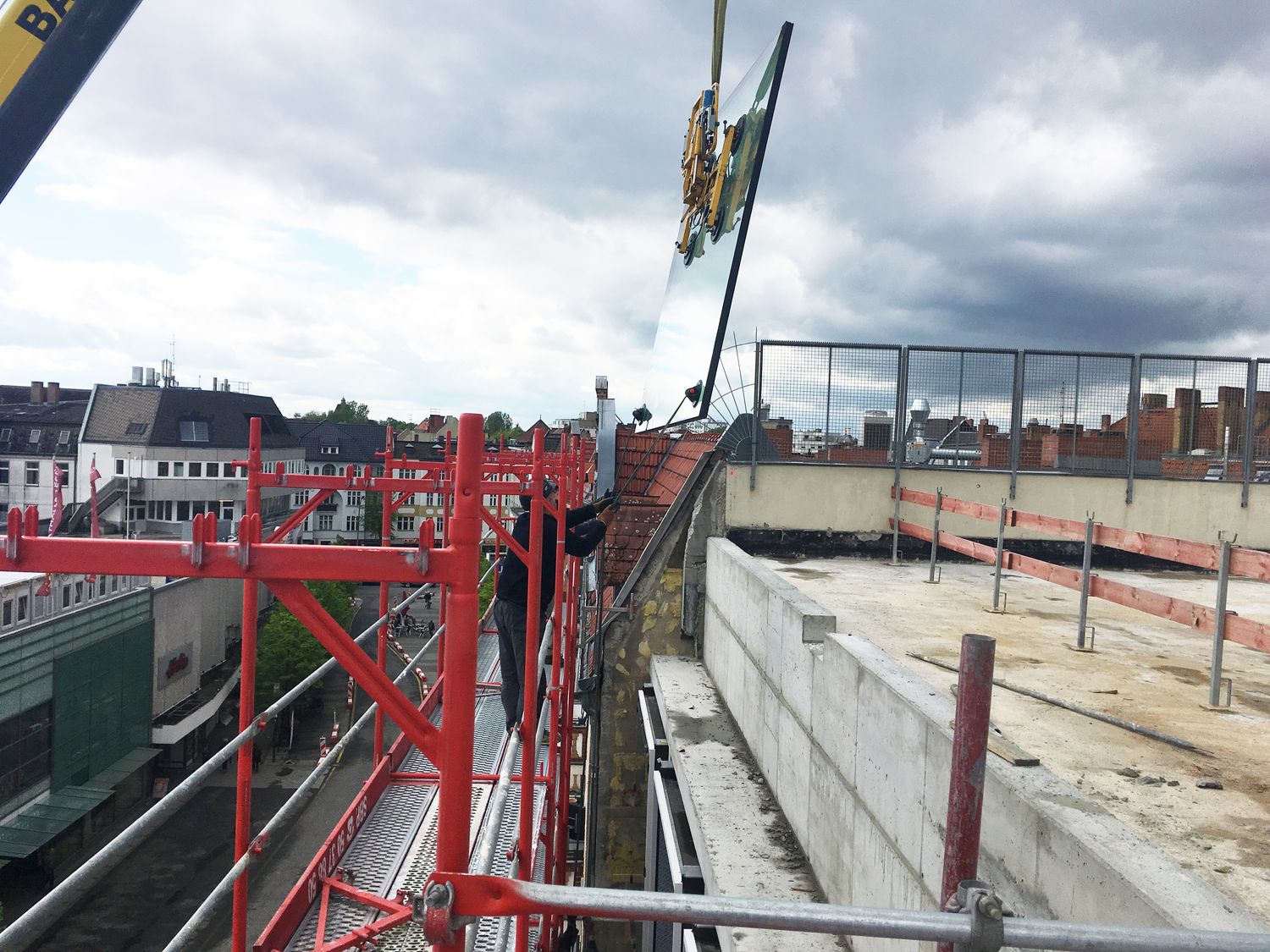 Es werde Licht! Passend zum überraschend frühlingshaften Wetter im April wird mit der Verglasung begonnen. Nicht nur dadurch wird die künftige Karstadt-Fläche langsam konkret. Es entsteht langsam ein erster Eindruck wie der Eingang in das Kaufhaus aussehen wird.