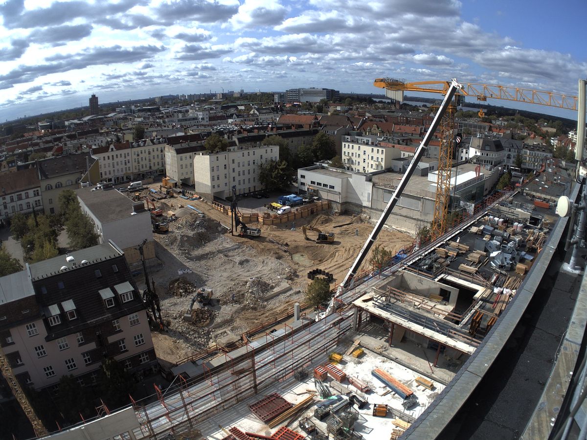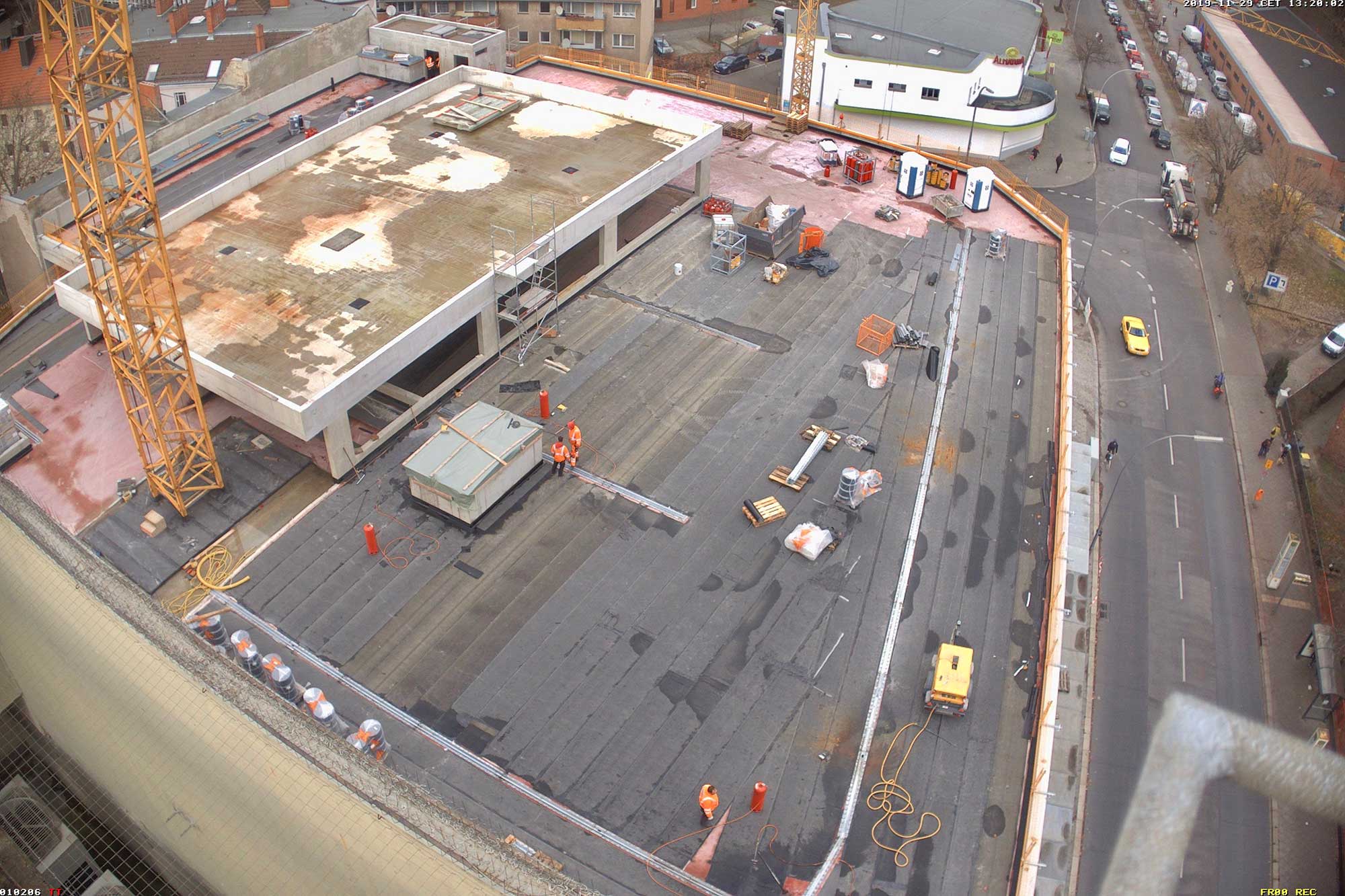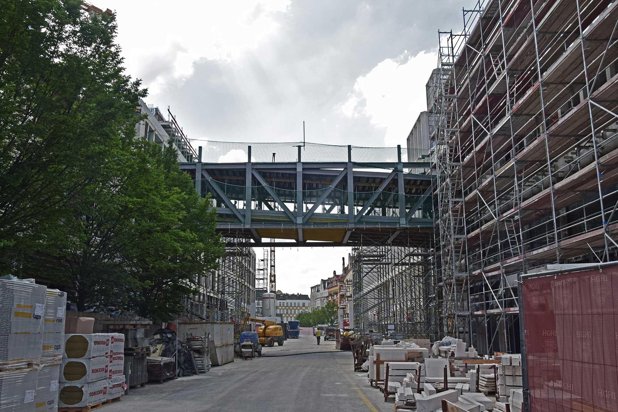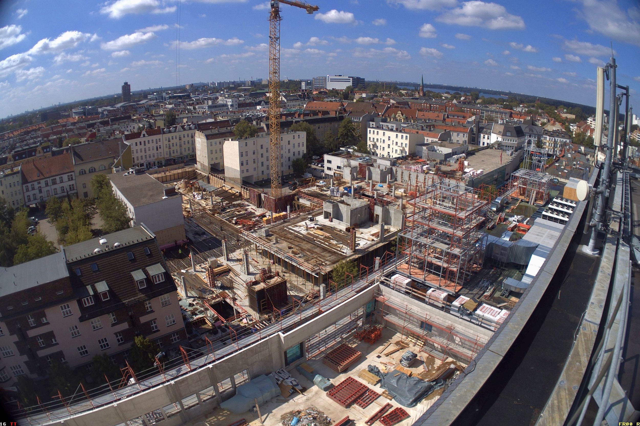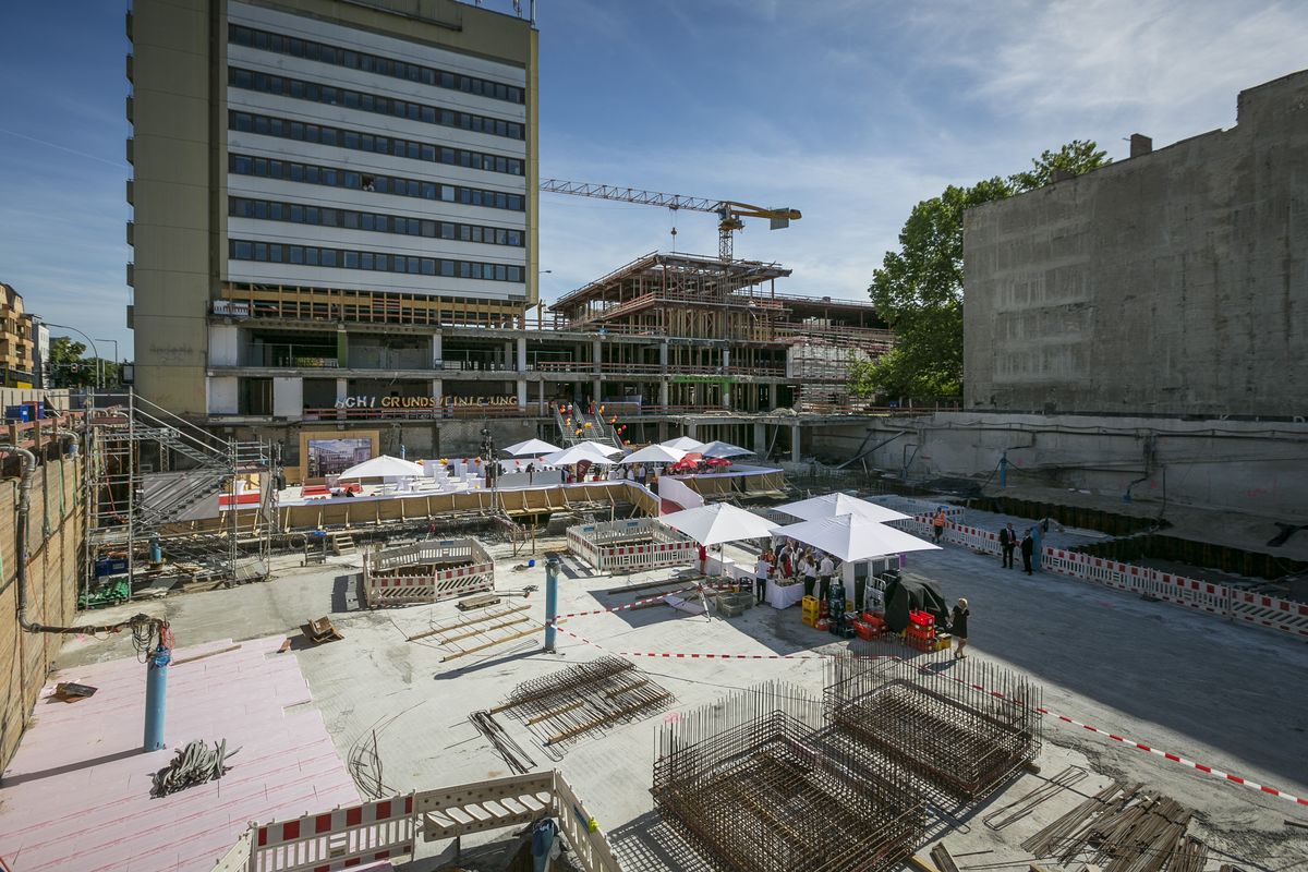 Im Bauteil Süd erfolgte eine Grundwasserabsenkung, um die Tiefbauarbeiten aufnehmen zu können. Im Bauteil Nord schreitet die Fassadengestaltung der Karstadt-Fläche an der Gorkistraße weiter voran. Nach Fertigstellung der sogenannten Pfosten-Riegel-Fassade wurden die Natursteinarbeiten aufgenommen. Darüber hinaus ist die Aufstockung von der ersten Etage bis dritten Obergeschoss finalisiert worden