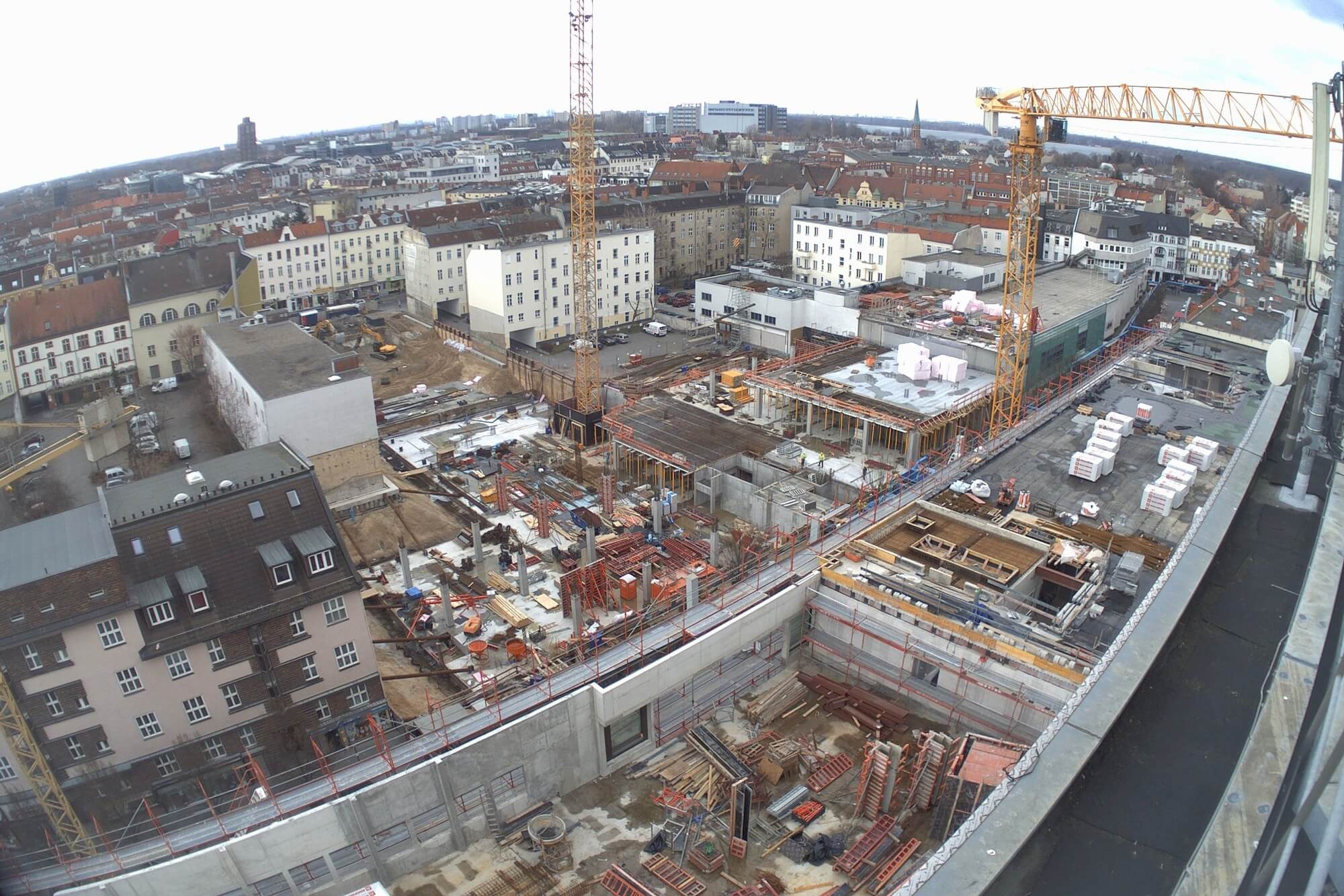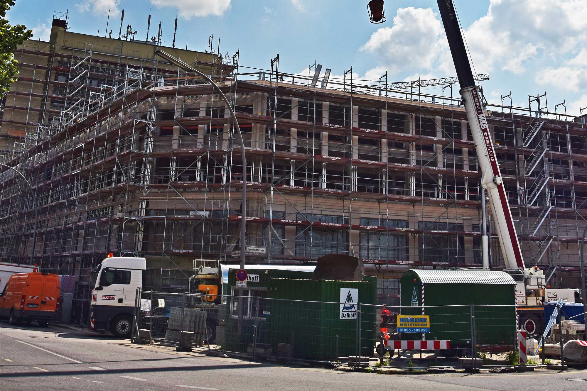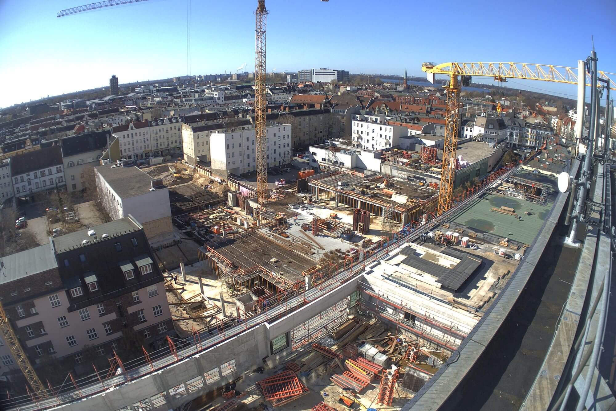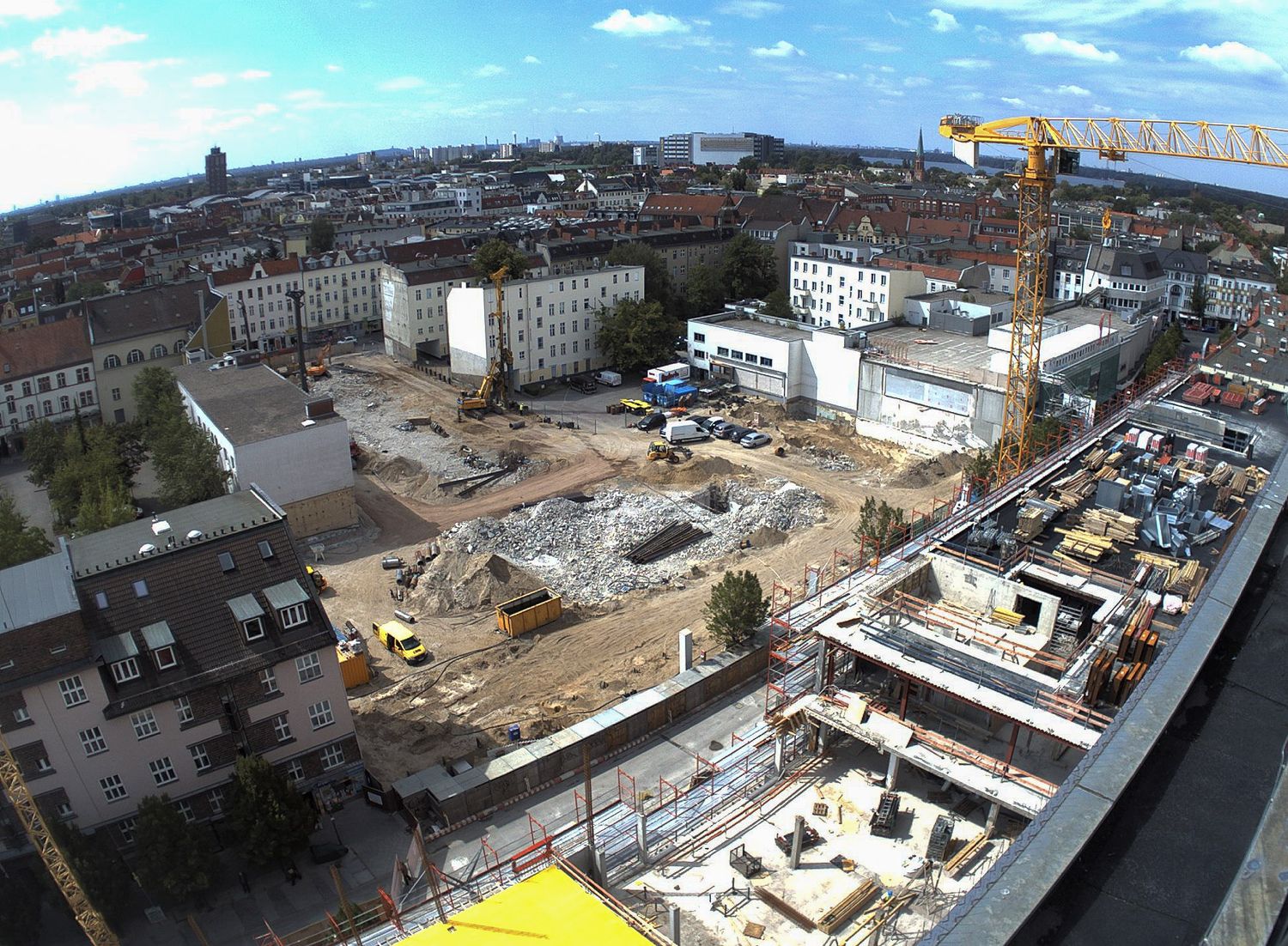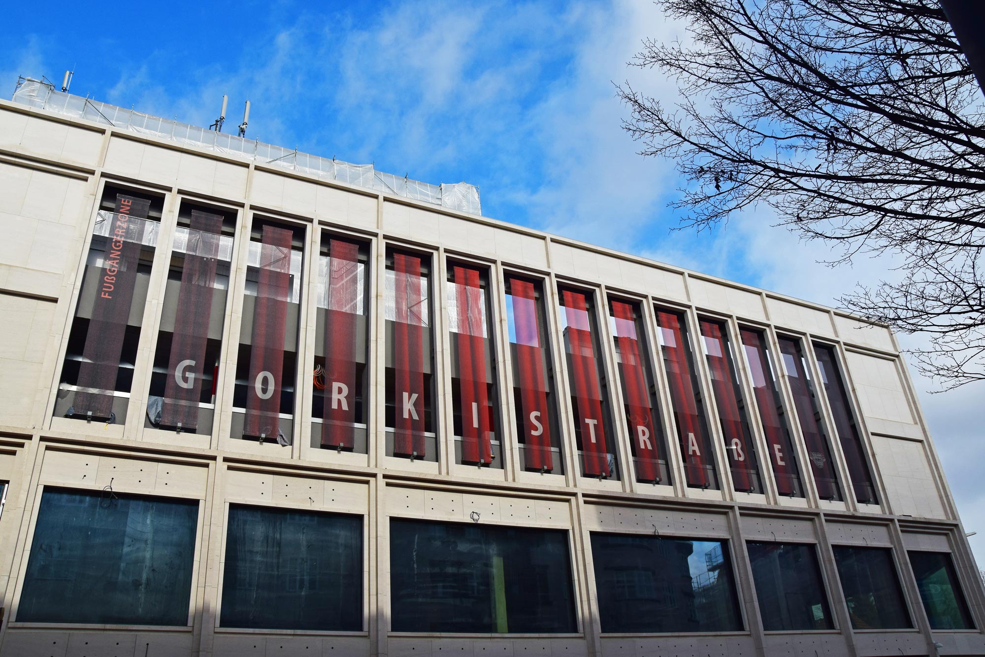 Im Bauteil Süd erfolgte eine Grundwasserabsenkung, um die Tiefbauarbeiten aufnehmen zu können. Im Bauteil Nord schreitet die Fassadengestaltung der Karstadt-Fläche an der Gorkistraße weiter voran. Nach Fertigstellung der sogenannten Pfosten-Riegel-Fassade wurden die Natursteinarbeiten aufgenommen. Darüber hinaus ist die Aufstockung von der ersten Etage bis dritten Obergeschoss finalisiert worden