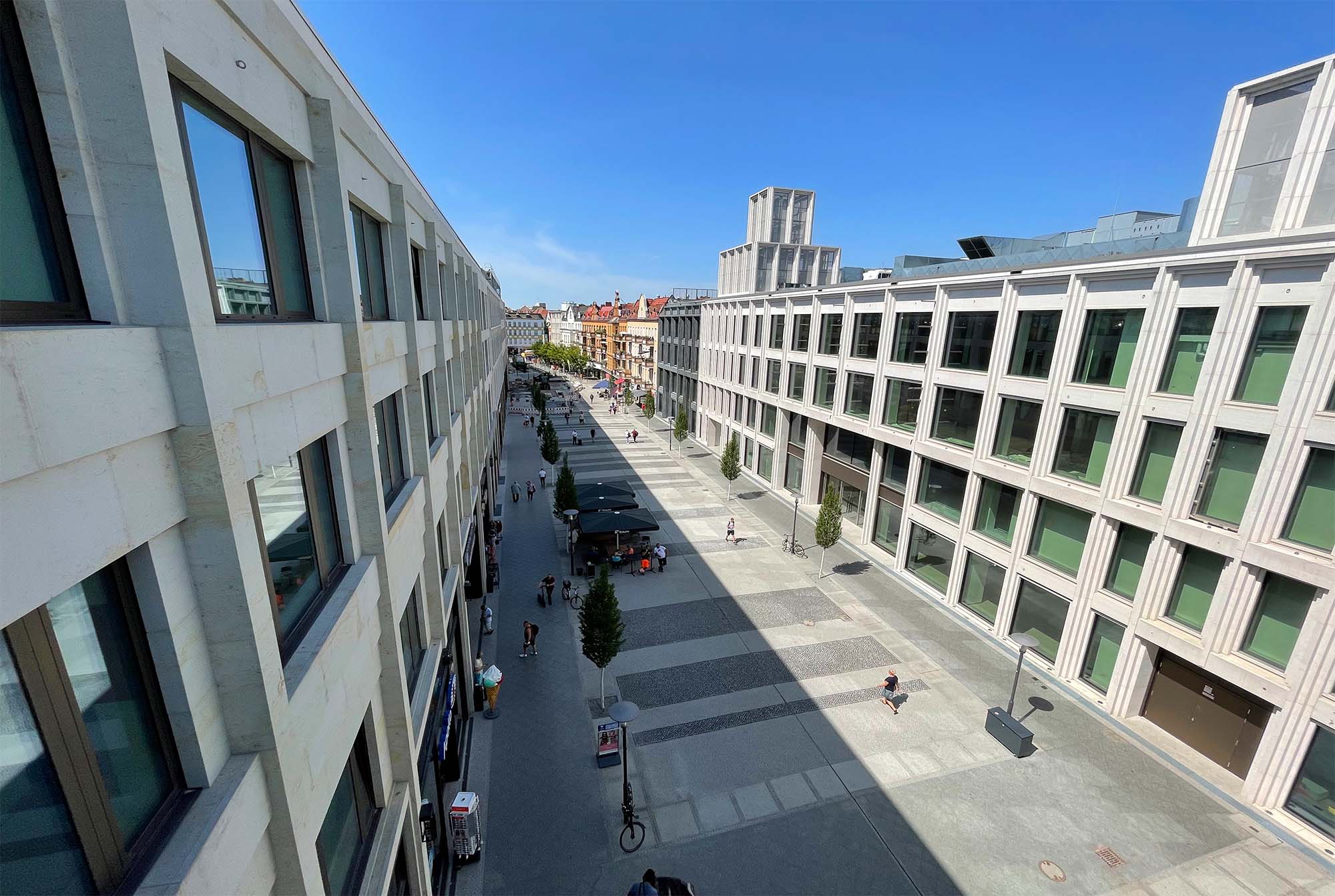 Das Projekt ist bundesweit einer der ersten zentralen Refurbishments einer kompletten Einkaufsstraße. Die Revitalisierungspläne beinhalten eine grundlegend neu gestaltete Shopping- und Erlebniswelt mit der Vergrößerung der Einzelhandels- und Büroflächen. Das Herzstück der neuen Fußgängerzone ist eine vollständig neu gestaltete Natursteinfassade samt Fassadenrelief, welche zum einen an die vorhandene Bausubstanz angebaut, zum anderen als Neukonstruktion errichtet wird.