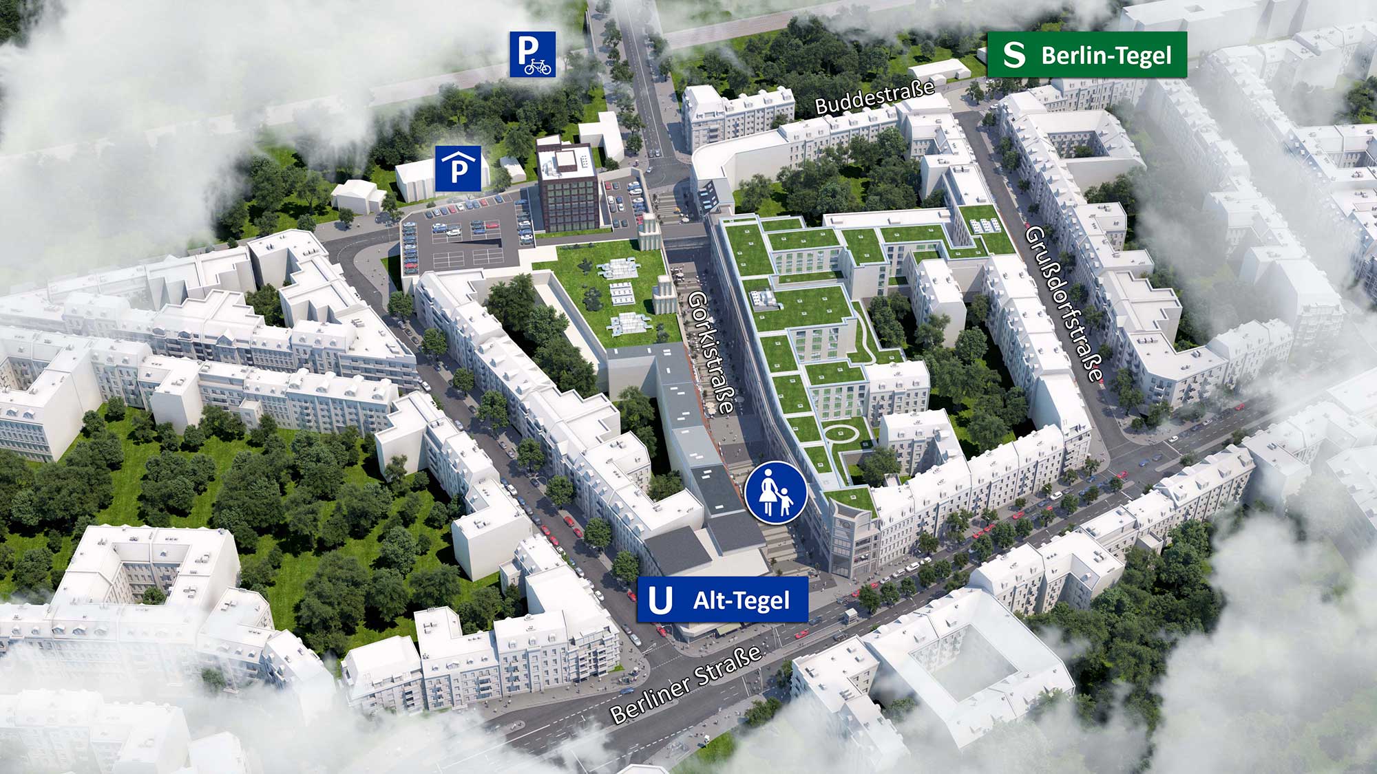 Bezeichnend für die Fußgängerzone ist die optimale Anbindung an wichtige Verkehrsknotenpunkte. So bietet der von der Fußgängerzone fußläufig erreichbare S-Bahnhof Tegel eine schnelle Verbindung zum Zoologischen Garten, Hauptbahnhof und Potsdamer Platz. Dazu besteht durch die Autobahn A111 eine direkte Anbindung an das Stadtzentrum. Der Standort beeindruckt auch mit einer Mischung aus grüner Natur und urbanem Zentrum. Unweit von der Gorkistraße befinden sich mit dem Tegeler See und Tegeler Forst attraktive Naherholungsgebiete, die zum Verweilen einladen.